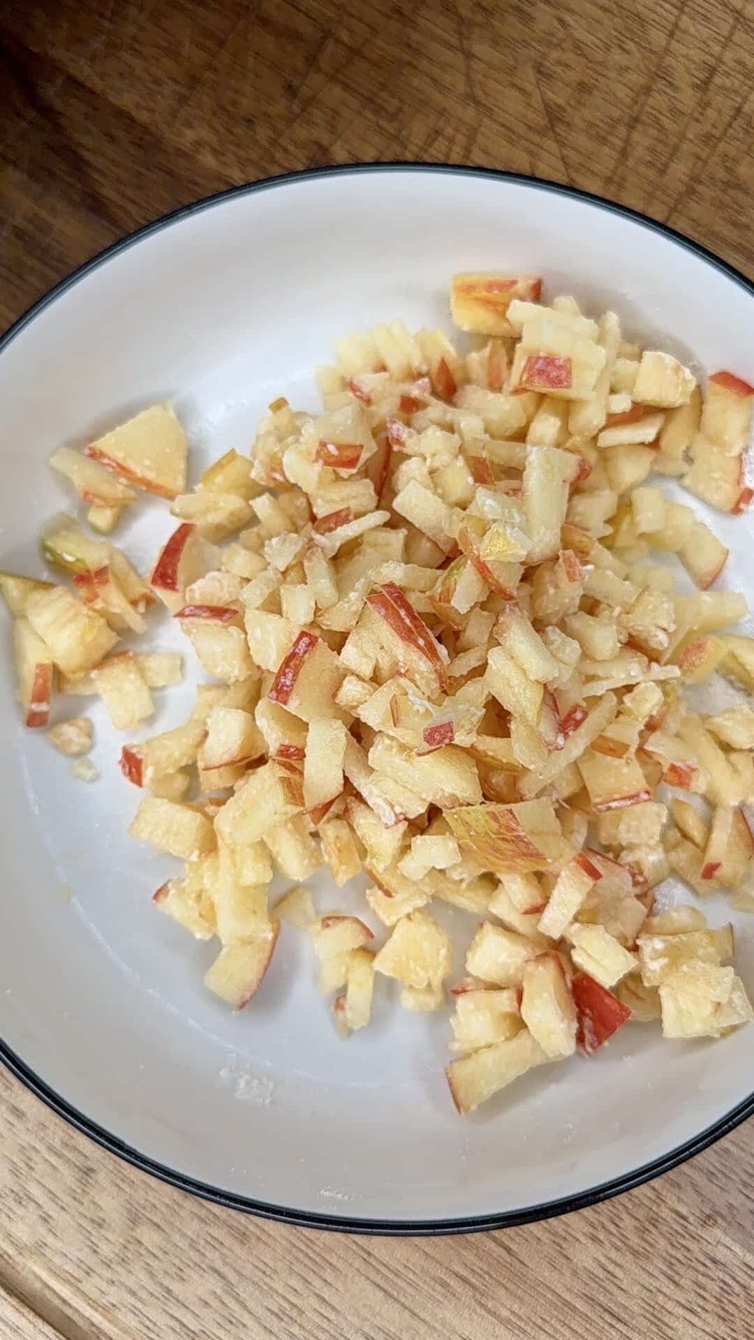 - Toss diced apple with 1 teaspoon flour, then fold into the batter.