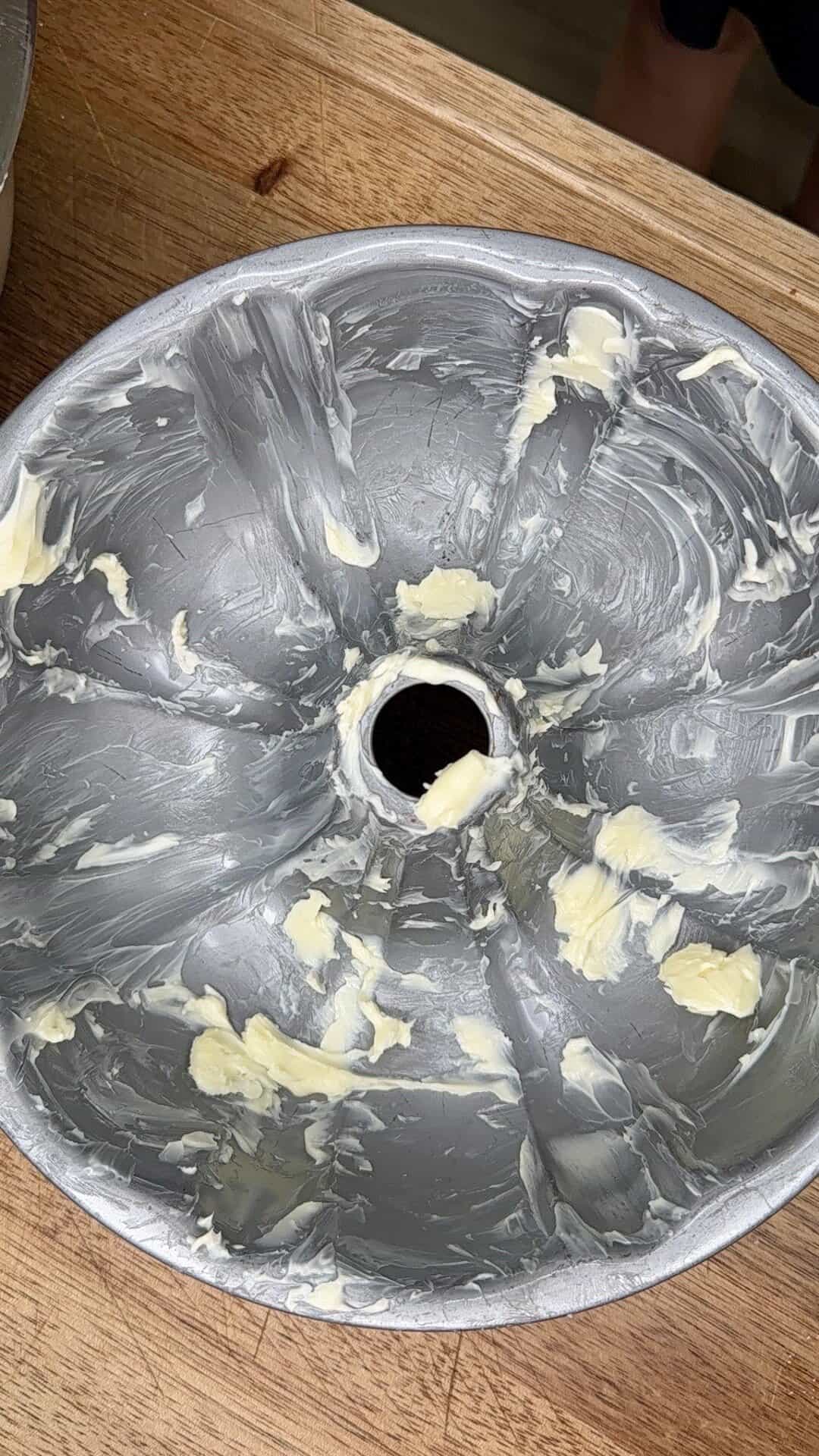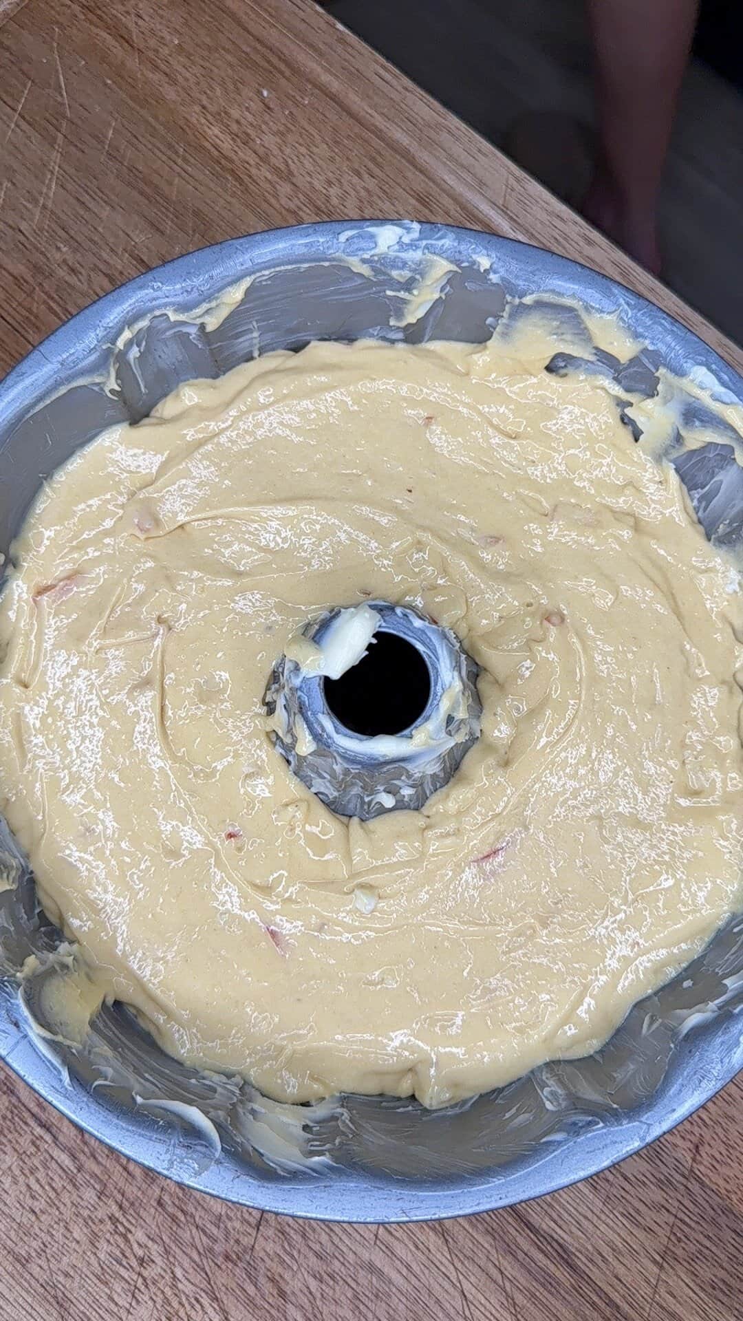 - Pour batter evenly into prepared Bundt pan.