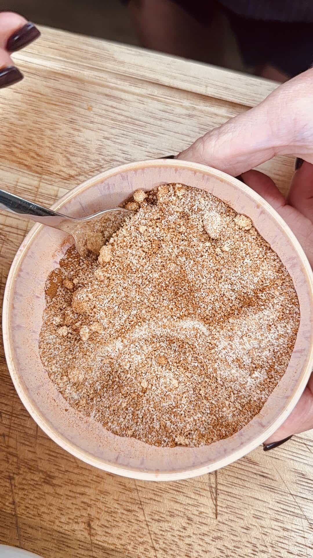 - Mix granulated sugar, brown sugar, and cinnamon together. Sprinkle (or roll) the cake until fully coated.
