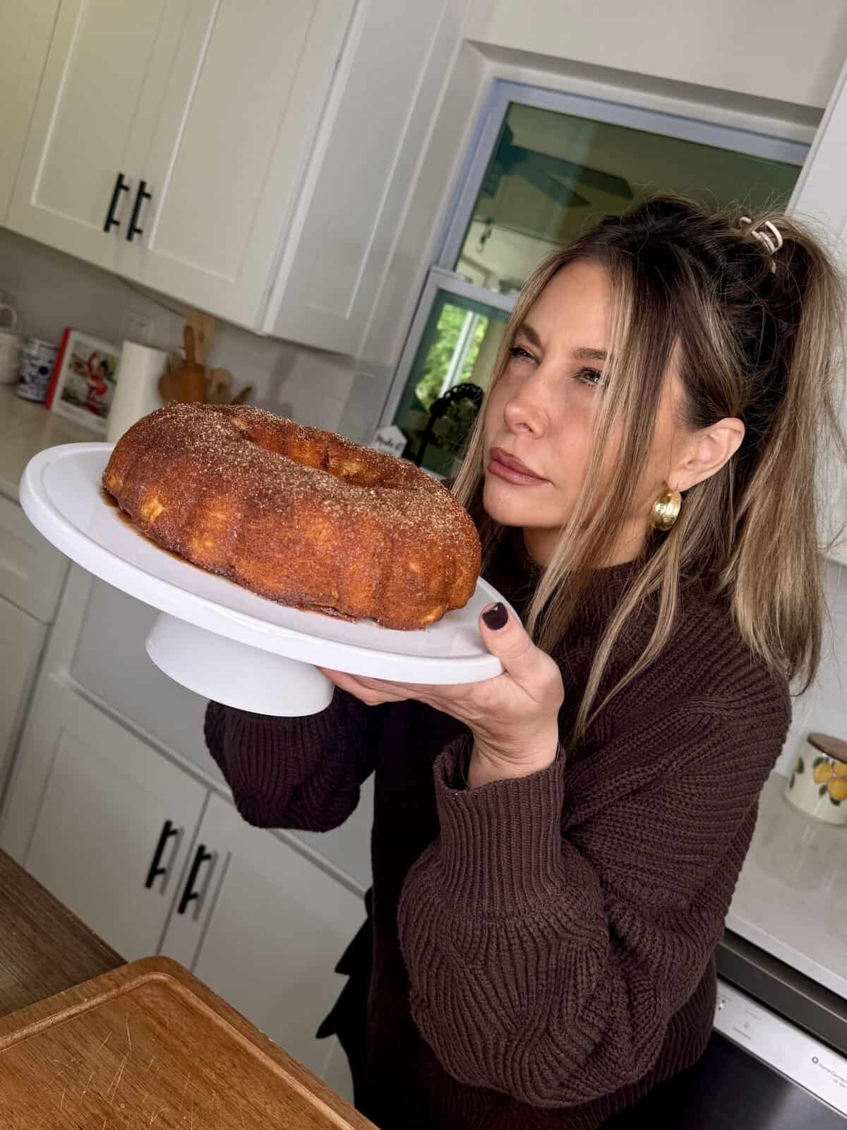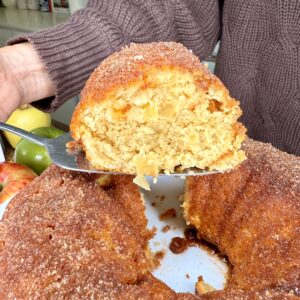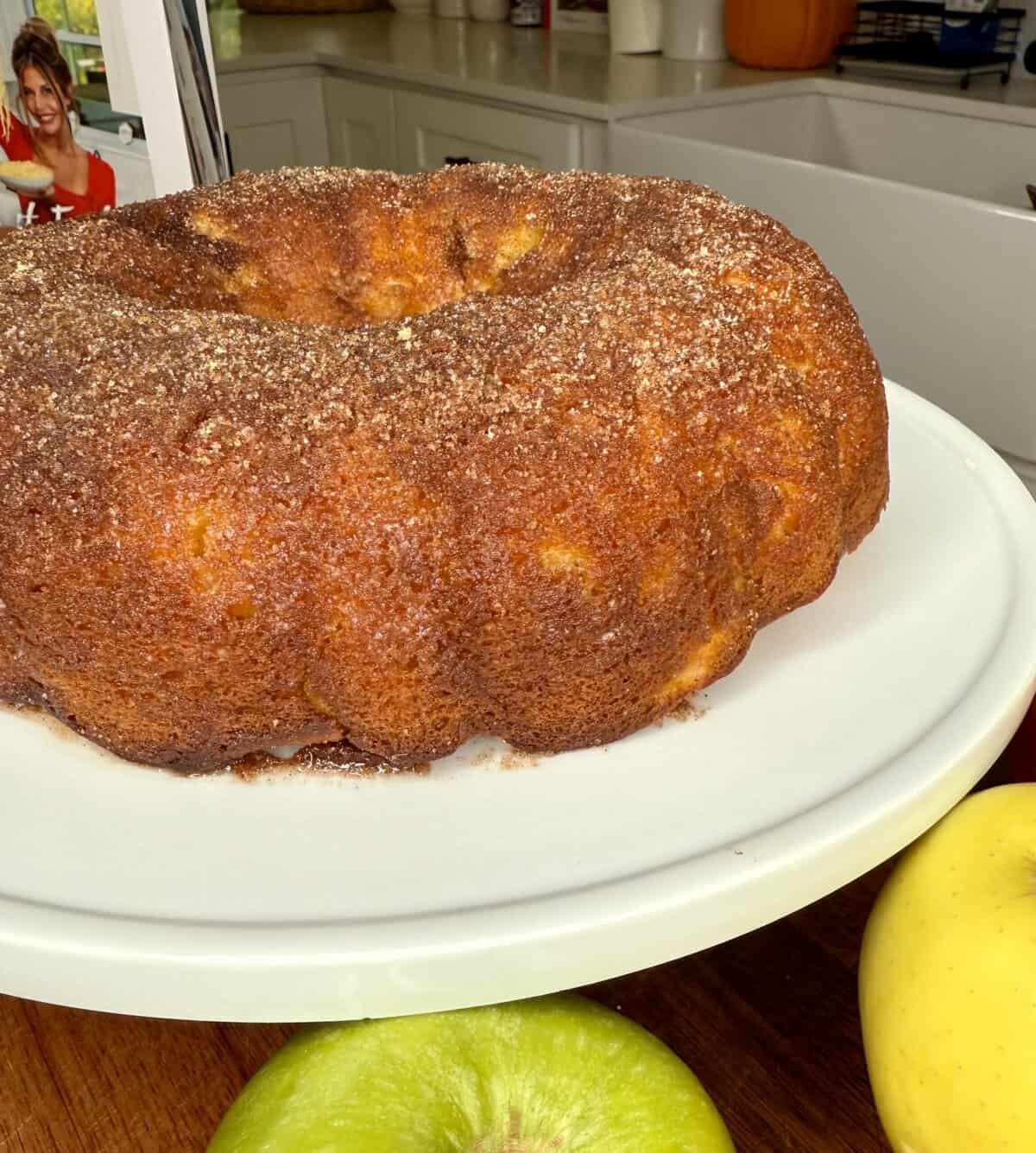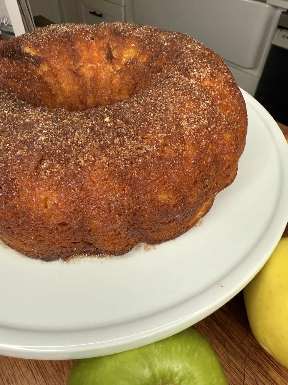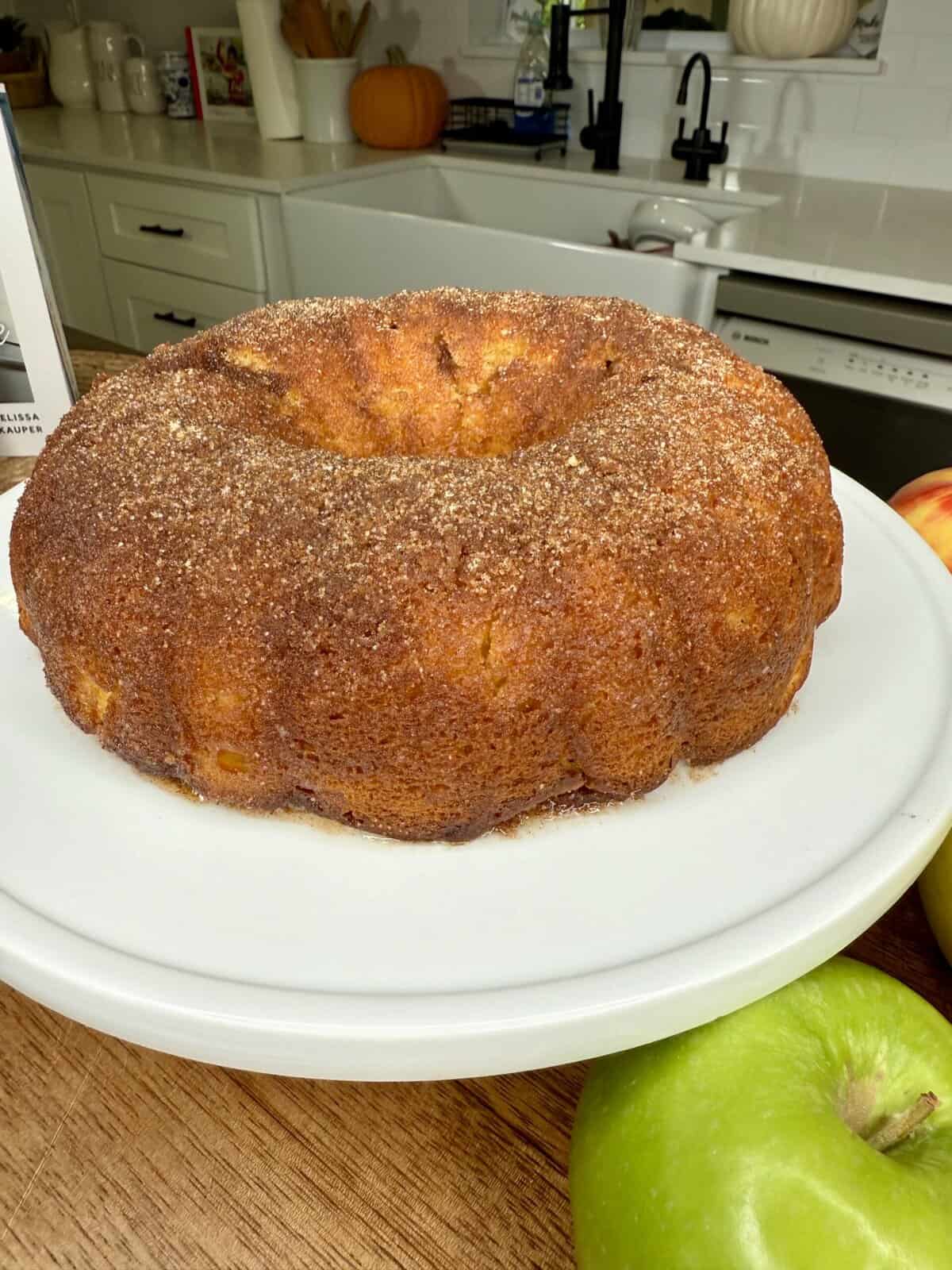 - Cozy flavor — apple cider + cinnamon sugar = fall in a Bundt pan.