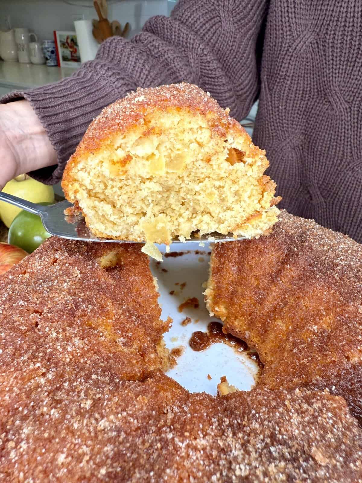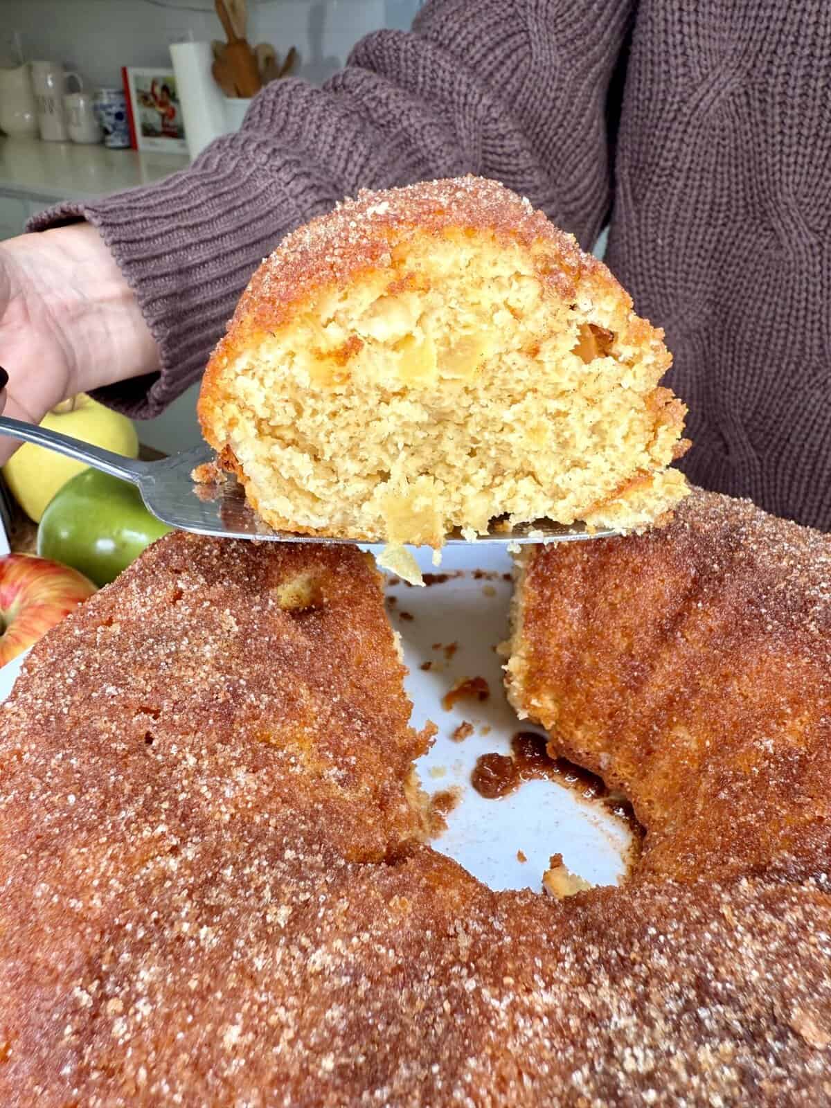 - Bakery-style crumb — sour cream + diced apples make it extra moist.