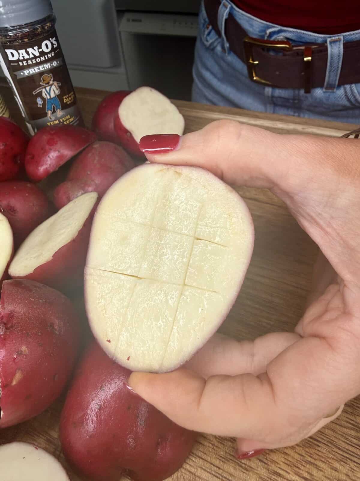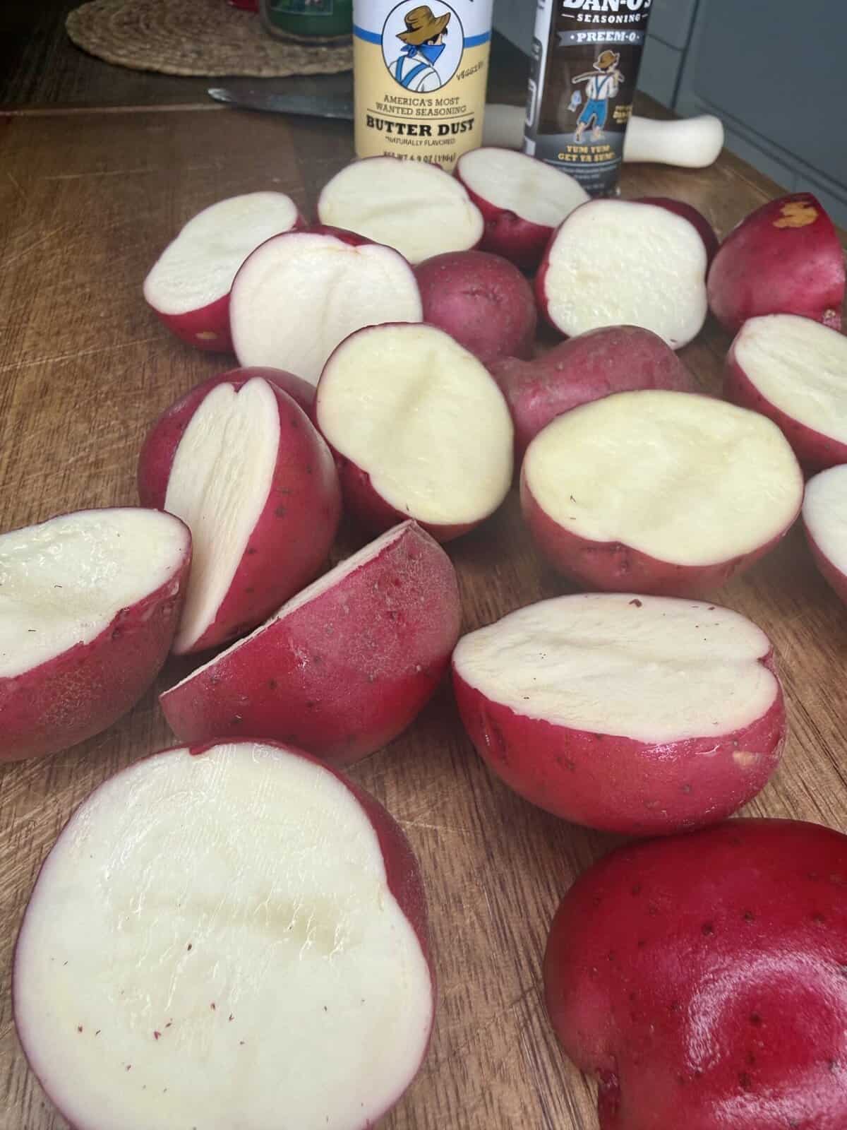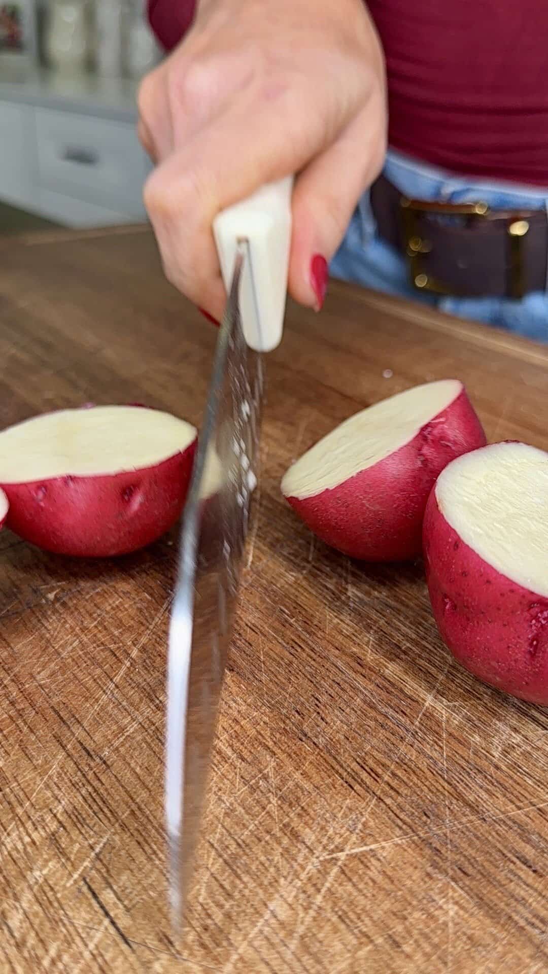 - Slice each red potato in half lengthwise.