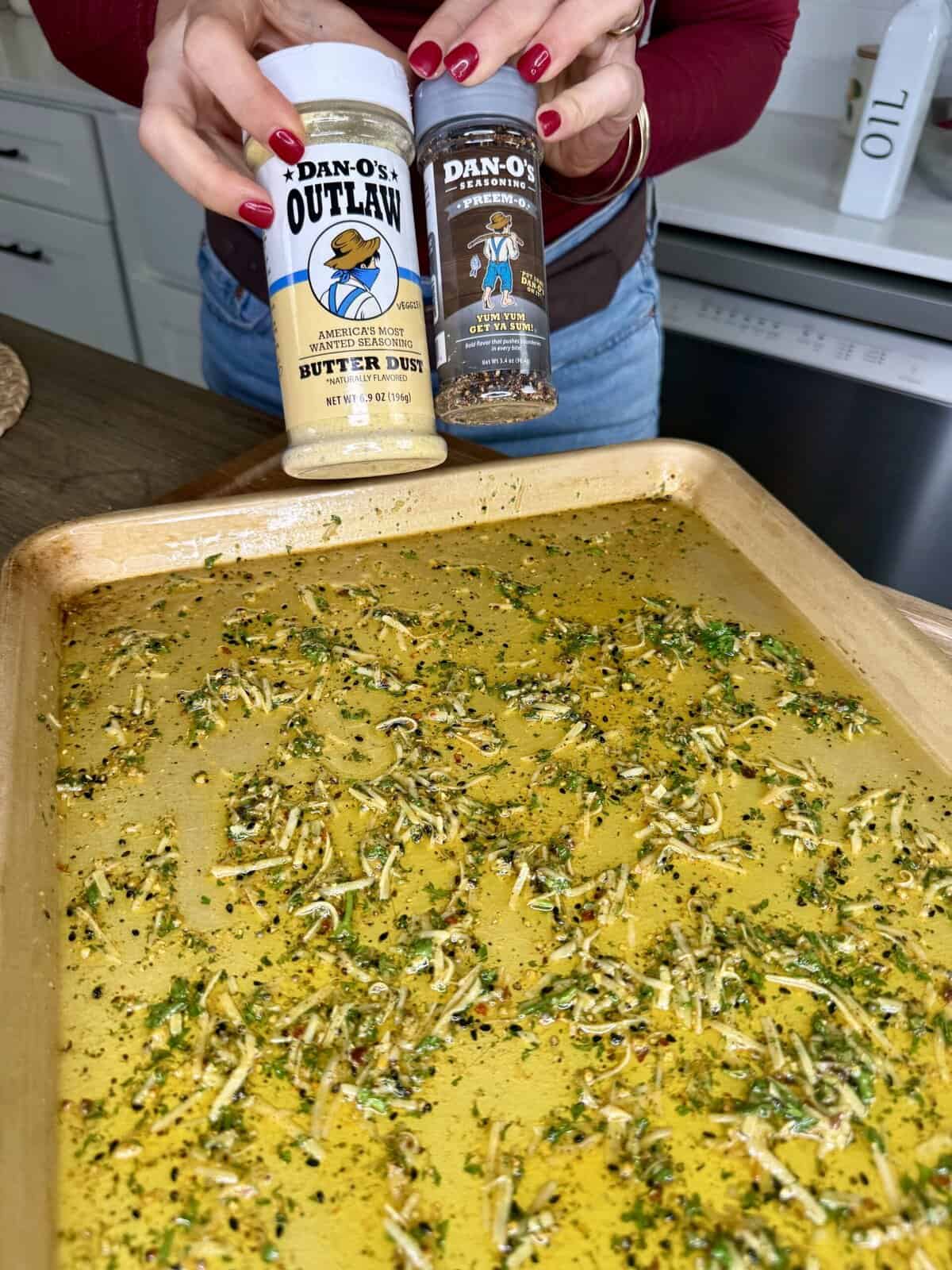 I reinvented one of my old recipes specifically with Dano’s Seasoning, and using Dano’s Outlaw Butter Dust and Dano’s Primo took this recipe from delicious to unbelievably, ridiculously, crave-worthy good. You can taste that garlicky-buttery depth, the savory Parmesan, and those crispy caramelized edges… I have them in my oven right now and my whole house smells INSANE.