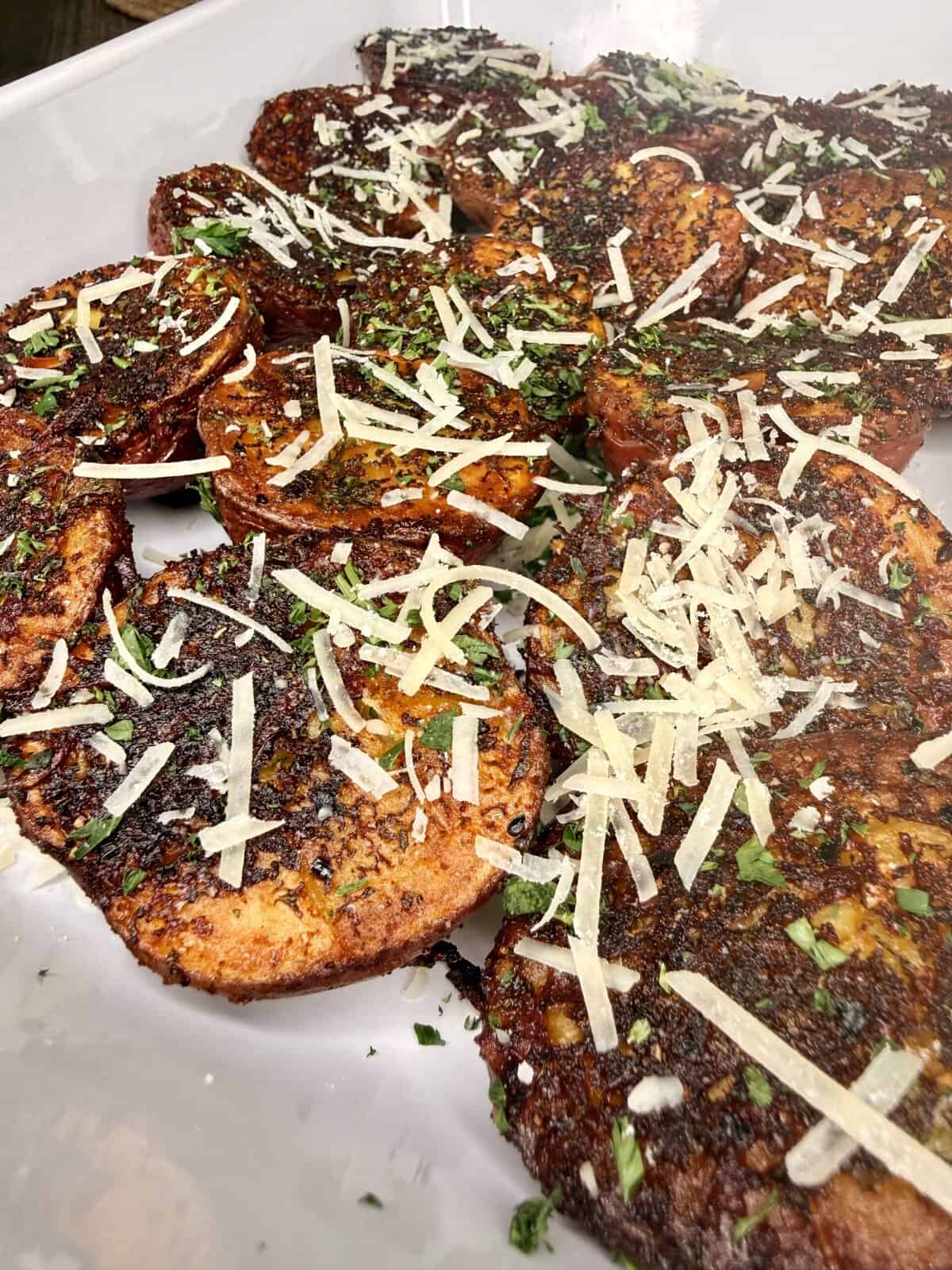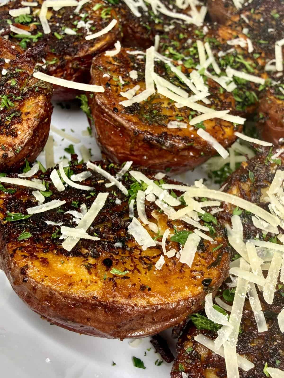Yes! Red potatoes work best because they get super creamy inside while the bottoms crisp up beautifully. But you can also use Yukon Golds — just avoid russets because they don’t hold their shape as well.