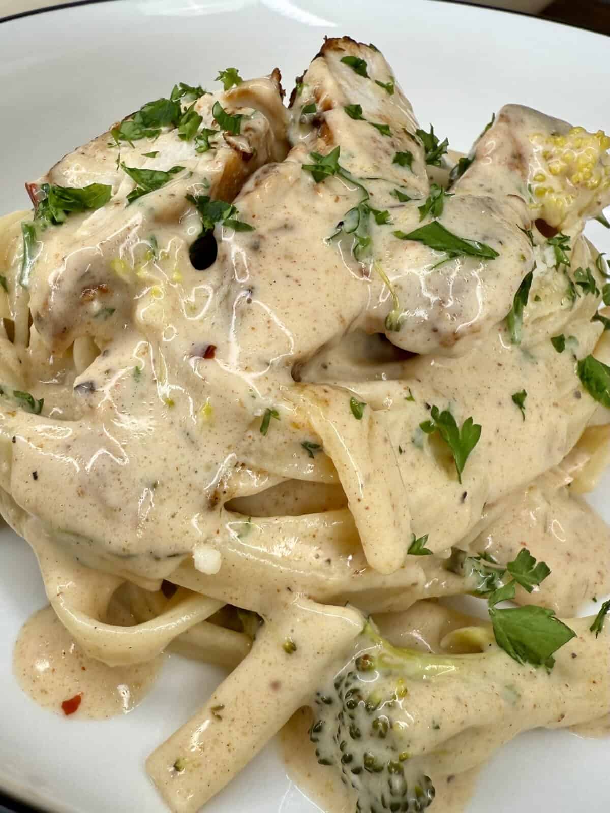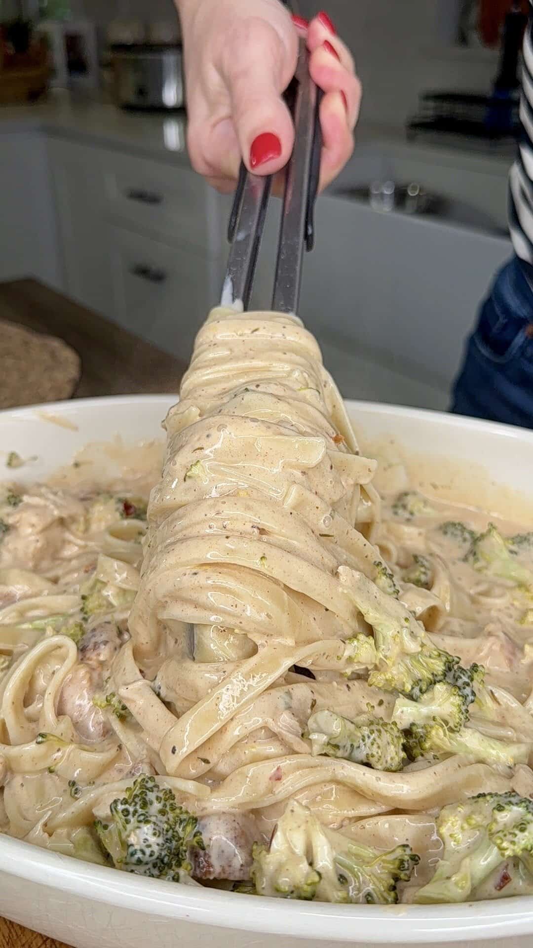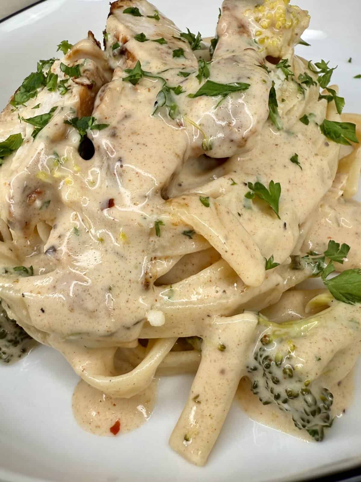 This Cowboy Creamy Chicken Alfredo is what happens when buttery garlic sauce meets a tangy, herby cowboy twist. The slow cooker handles the creamy Alfredo base while you pan-sear juicy chicken with my signature seasoning. Finish with broccoli and fettuccine and you’ve got weeknight comfort that tastes restaurant-level — without the fuss.