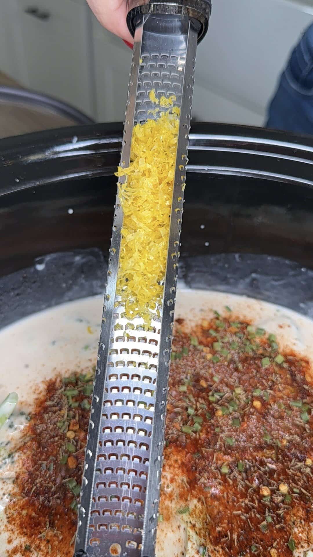 - Note: We don’t put fresh garlic lemon juice/zest, or Dijon in the blend — those go into the Crock-Pot base.