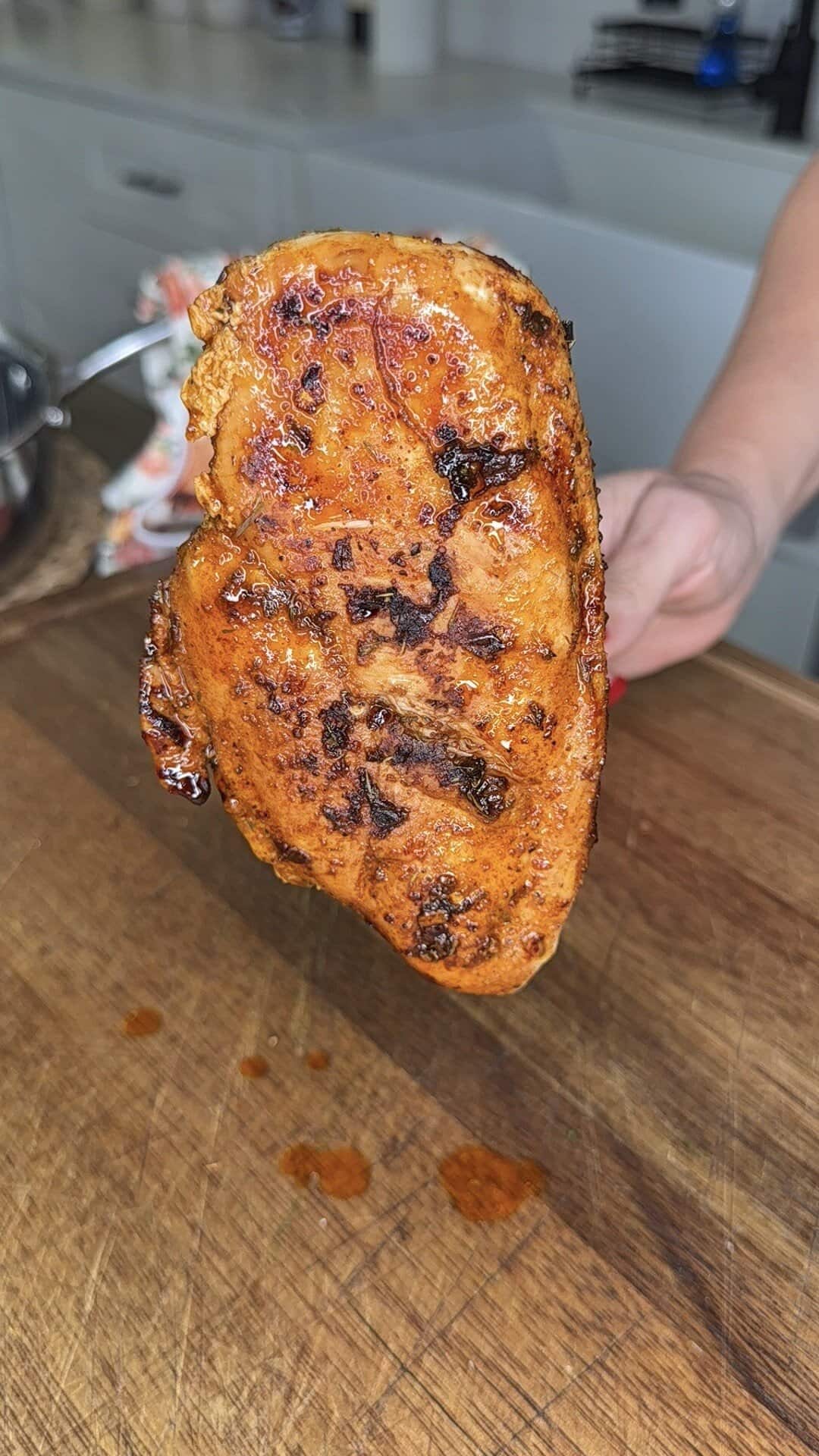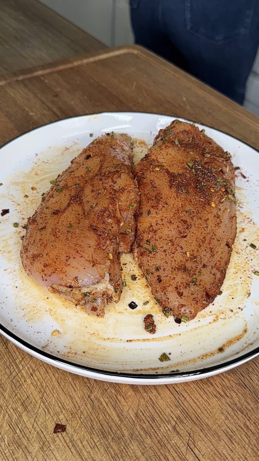 - Pat chicken dry. Rub with remaining Cowboy seasoning; drizzle ~½ tsp oil per breast and massage to coat.