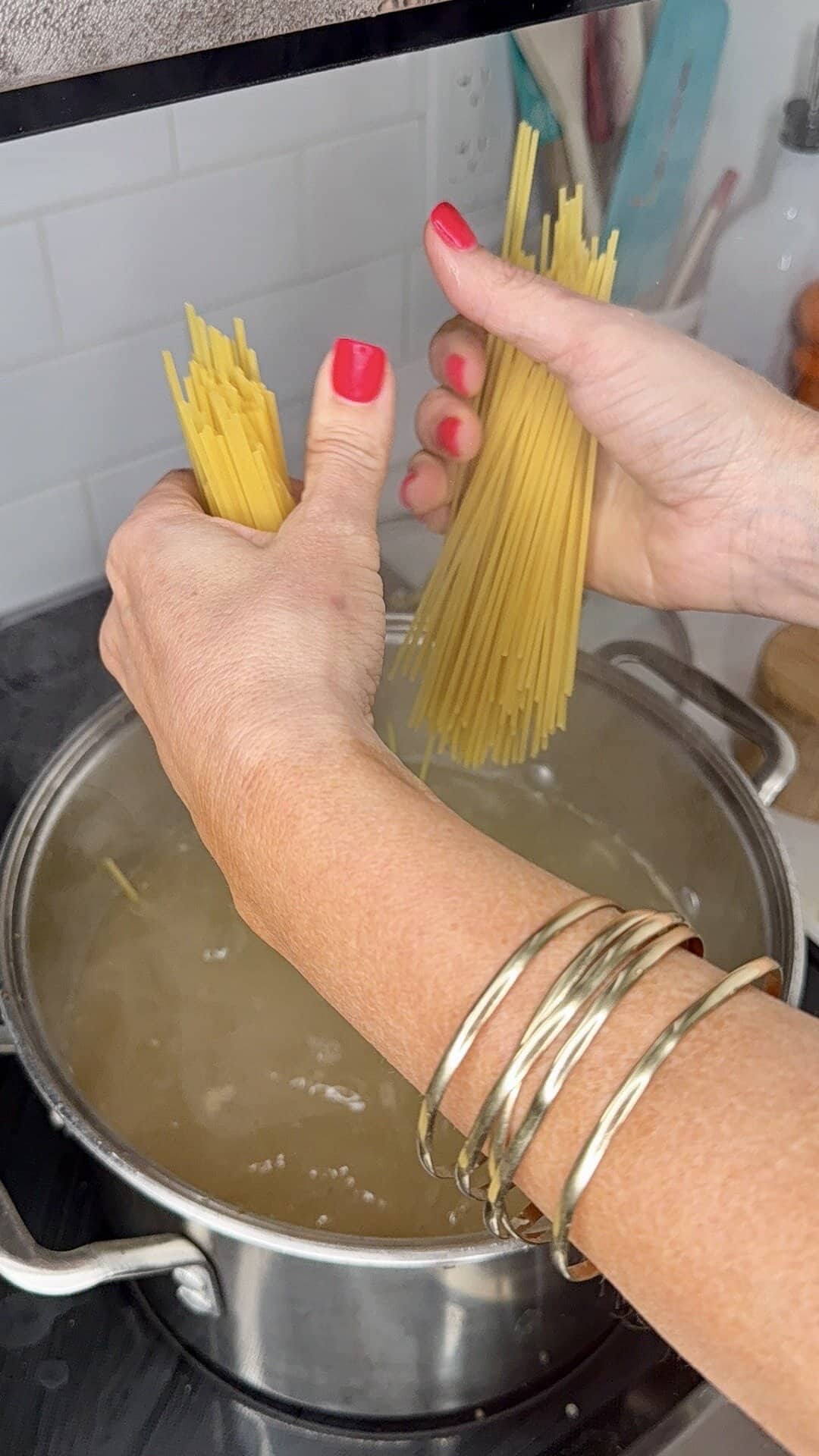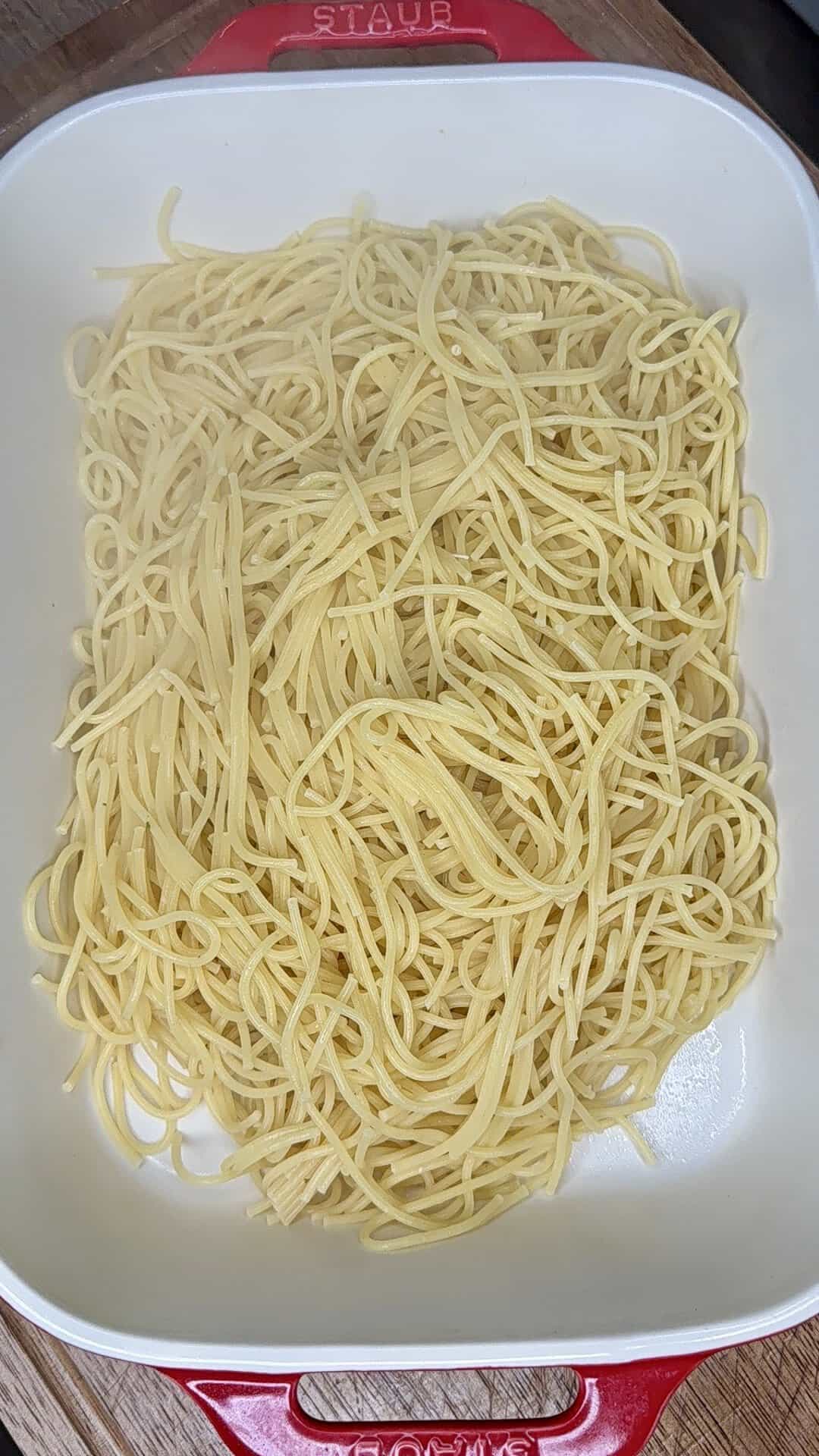 - 16 oz spaghetti broken in half before boiling