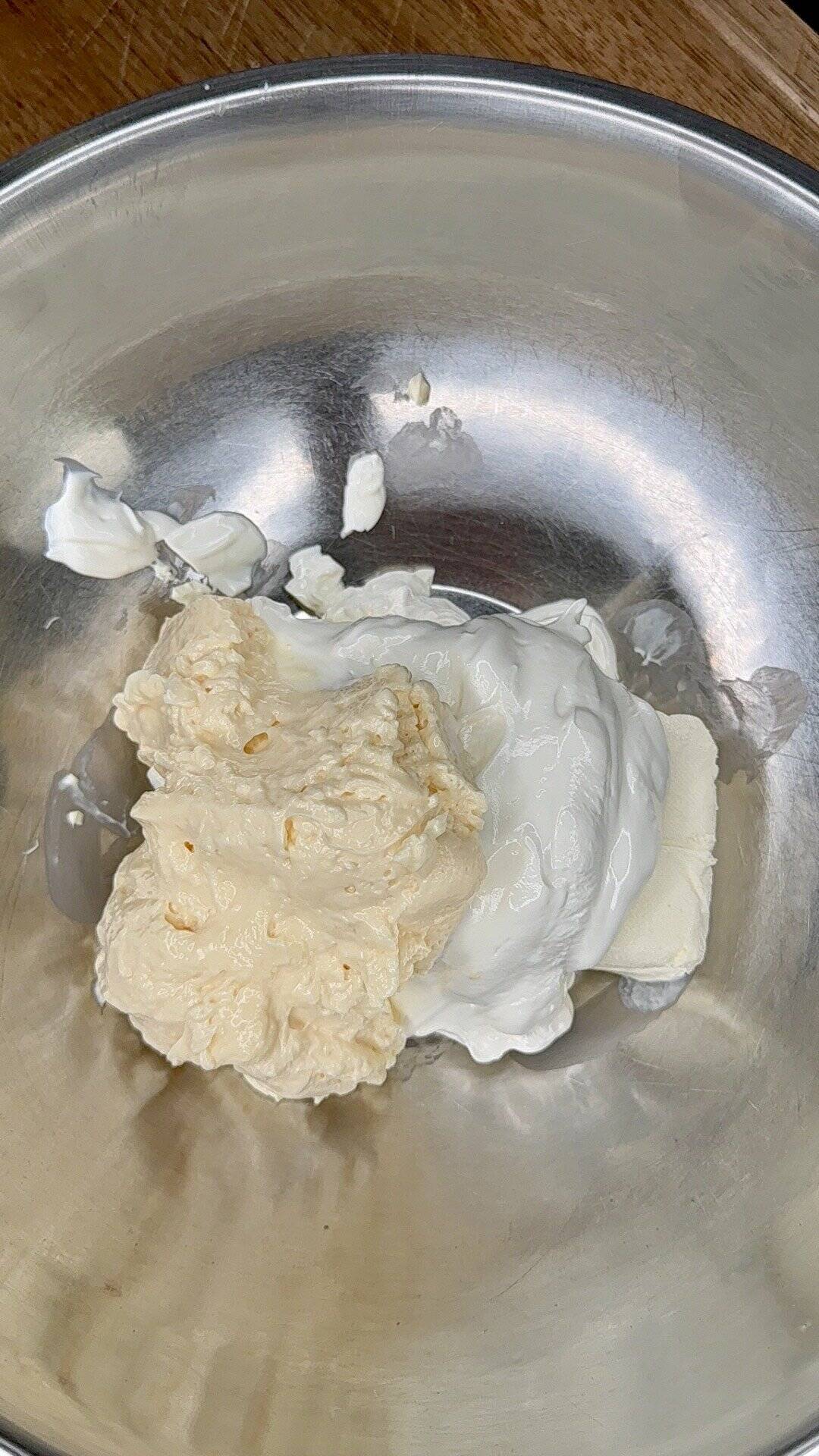 - Mix the creamy base: In a large bowl, beat cream cheese until smooth. Stir in sour cream and mayo until combined.