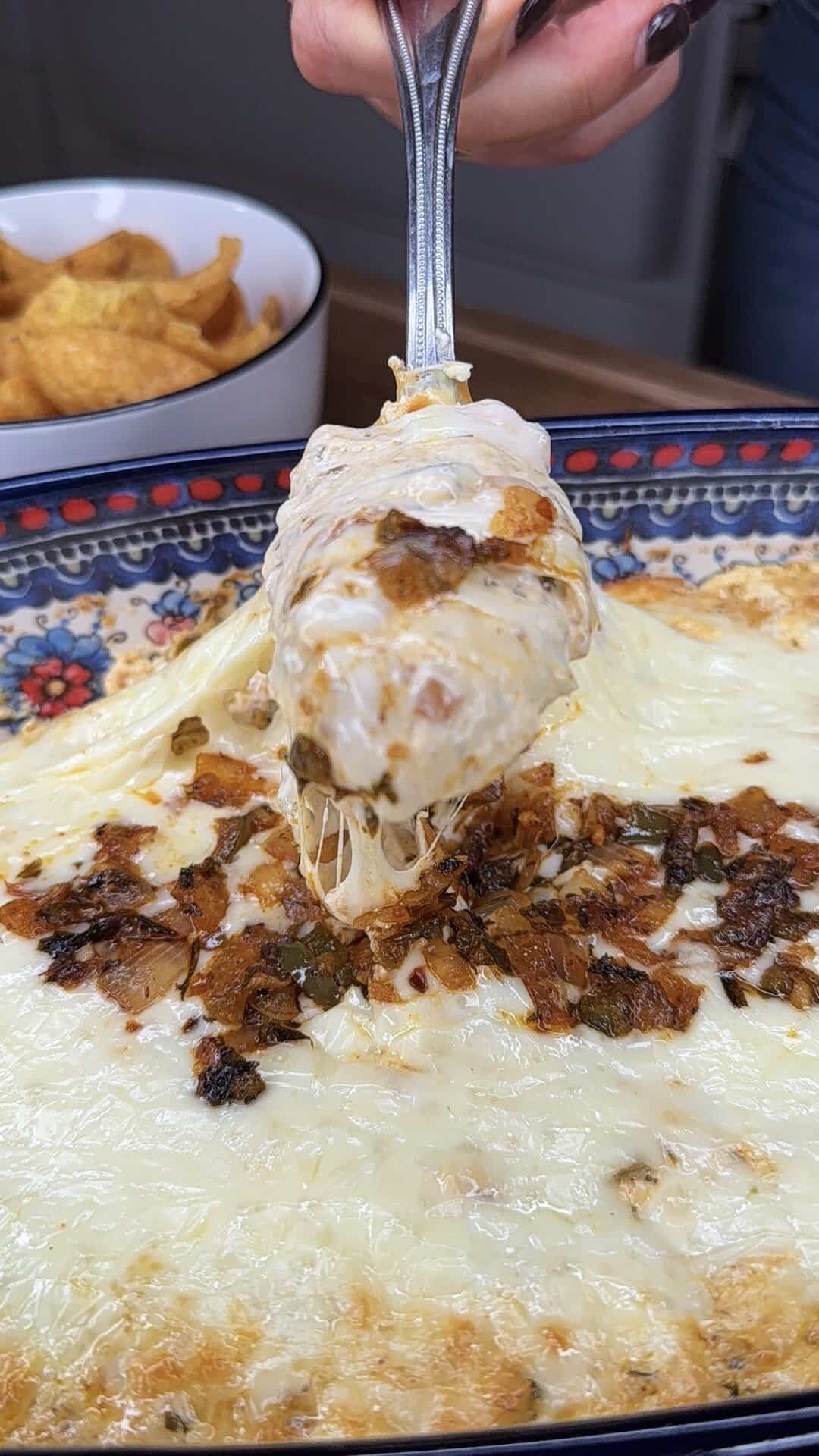 This Creamy Cowboy Butter Dip takes everything you love about my famous Cowboy Butter sliders — the garlic, lemon, herbs, spice, and buttery richness — and transforms it into the ultimate baked dip. We sauté onions and jalapeños in a cowboy butter base, fold them into a creamy blend of cream cheese, sour cream, and mayo, then bake it all off with gooey cheese on top. It’s bold, zesty, and totally irresistible. This is the kind of dip that makes game days, holidays, or Friday night snack boards unforgettable. Serve it hot and bubbly with Ruffles potato chips, Fritos scoops, pretzel crisps, or even fresh bread for dipping. For more delicious recipes just like this click here!