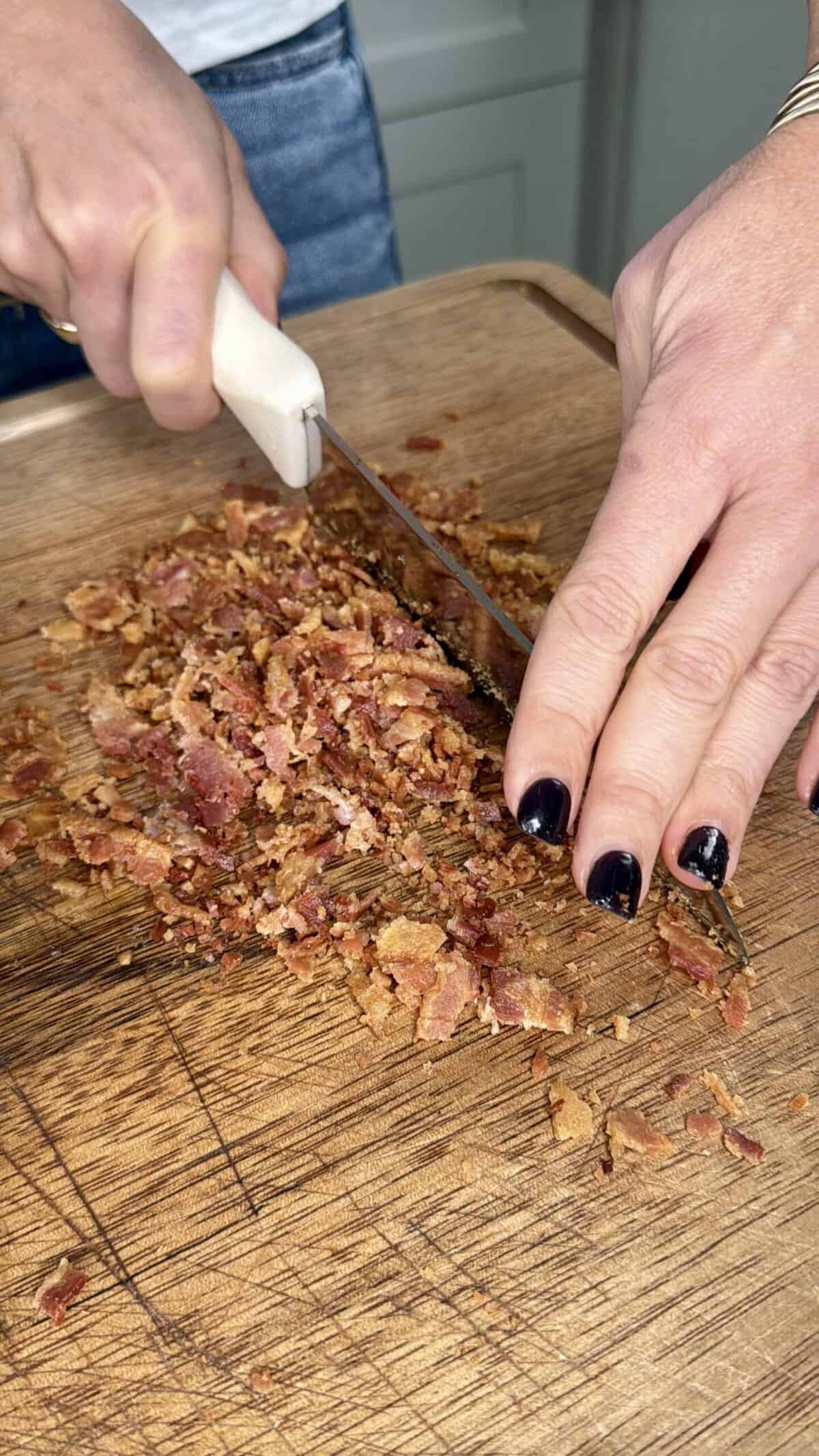 - 8 slices bacon cooked and crumbled (reserve some for garnish)