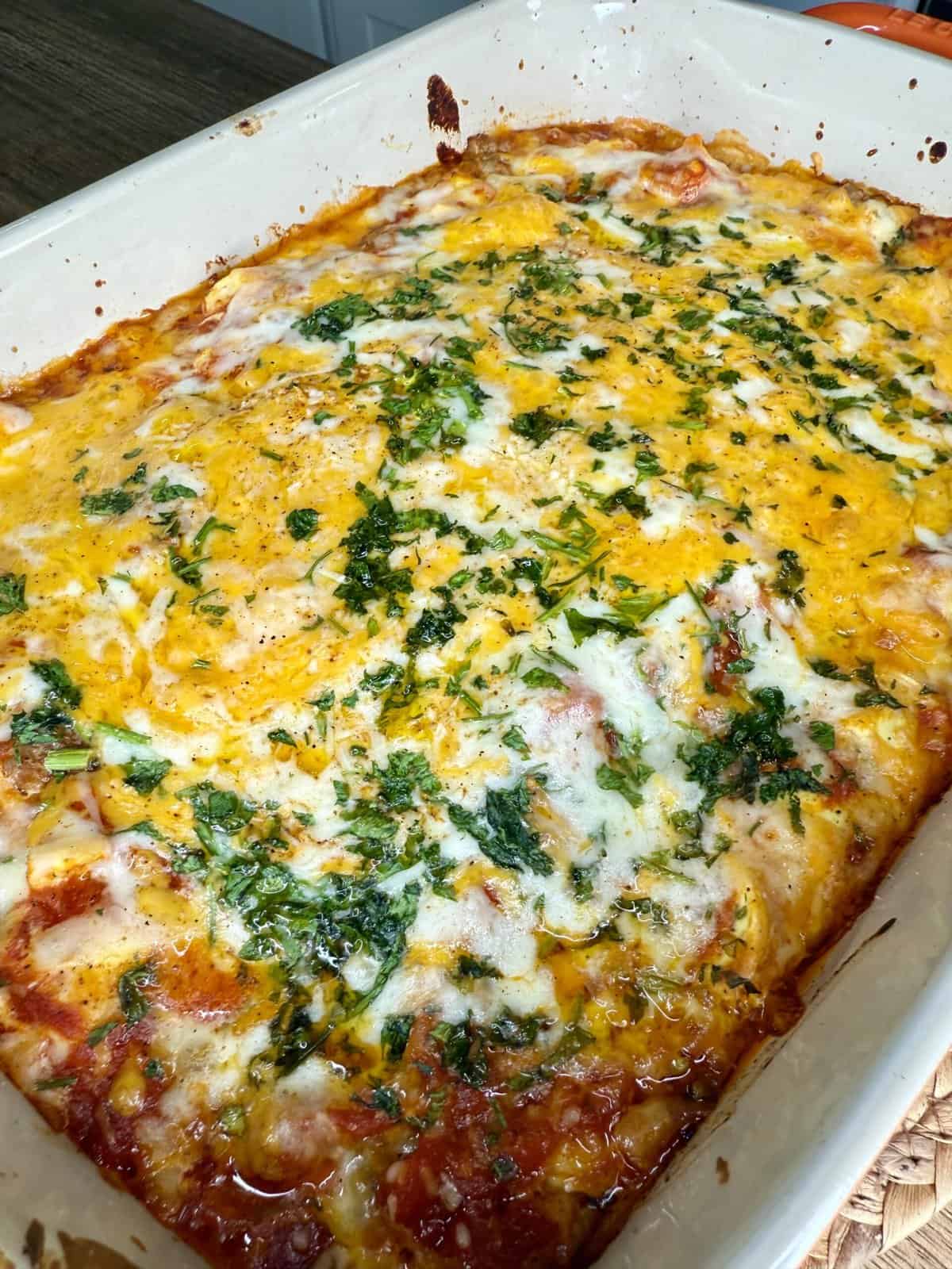 Nope! If you’re missing one or want to simplify, just use what you have. Mozzarella alone will still give you that gooey, cheesy top. Cheddar adds sharpness, and parmesan brings saltiness—so mix and match to your taste.