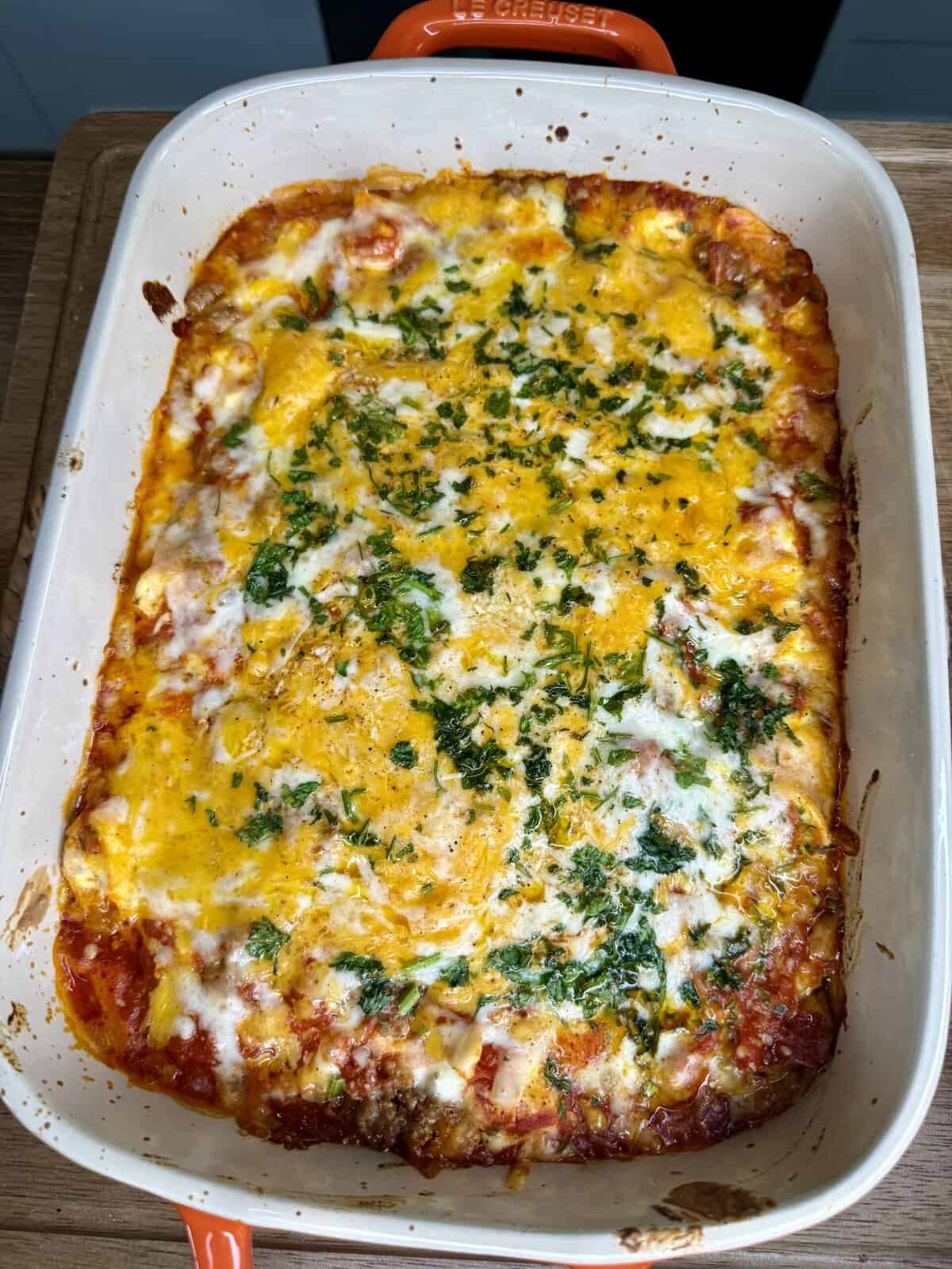 - Uncover and broil for 2–3 minutes until the top is golden and melty. Watch it close!