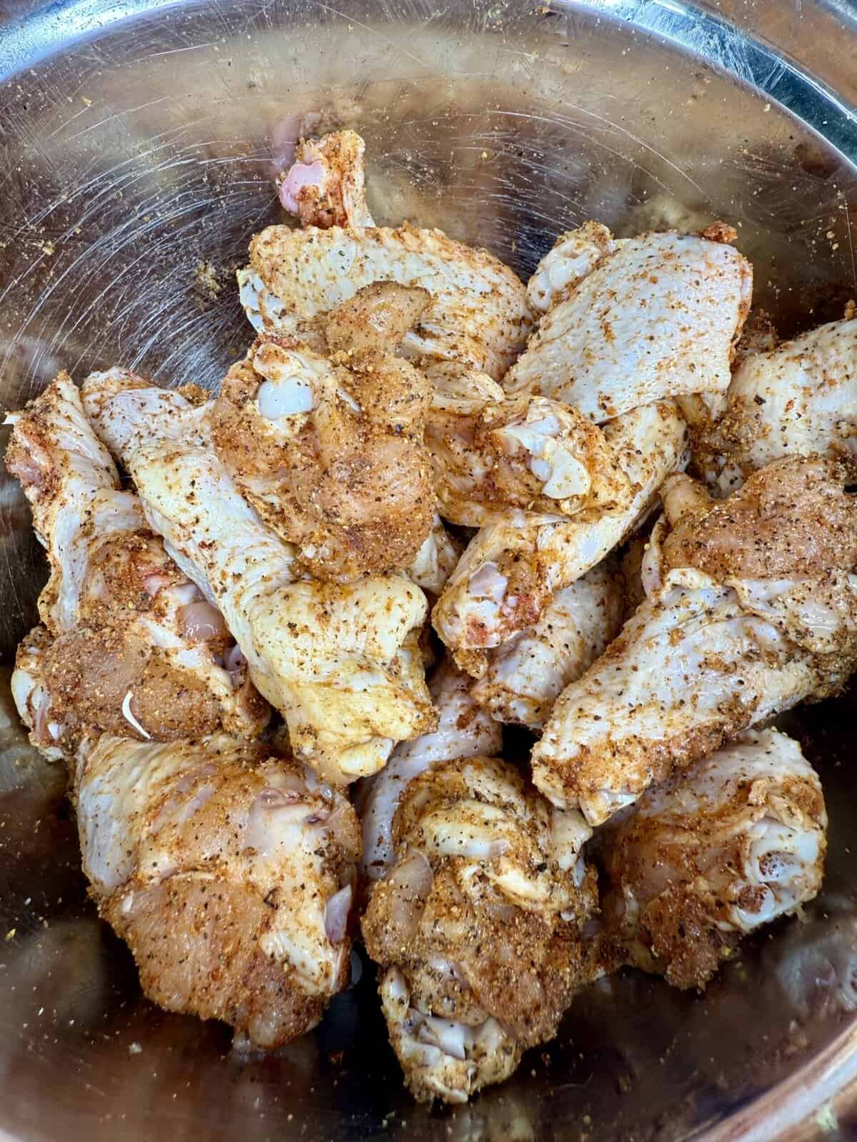 - Toss the wings in the seasoning blend until fully coated, then let them rest at room temp for 20–30 minutes to allow the seasoning to absorb.