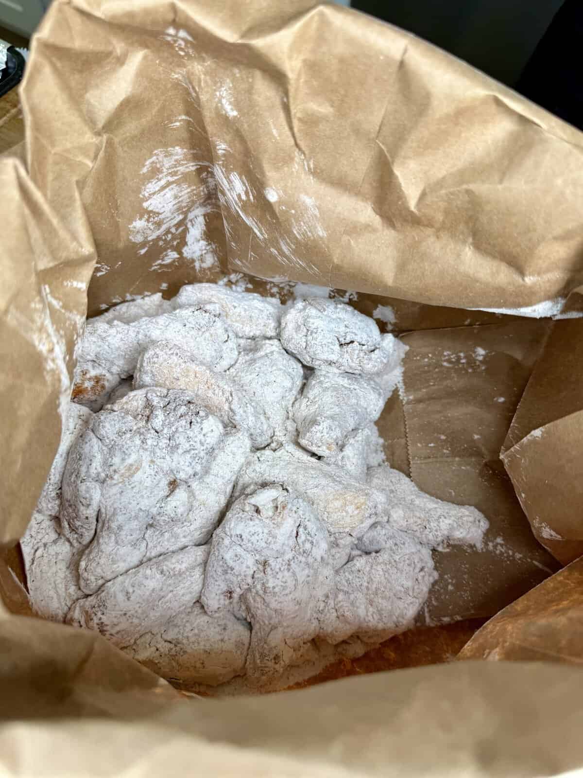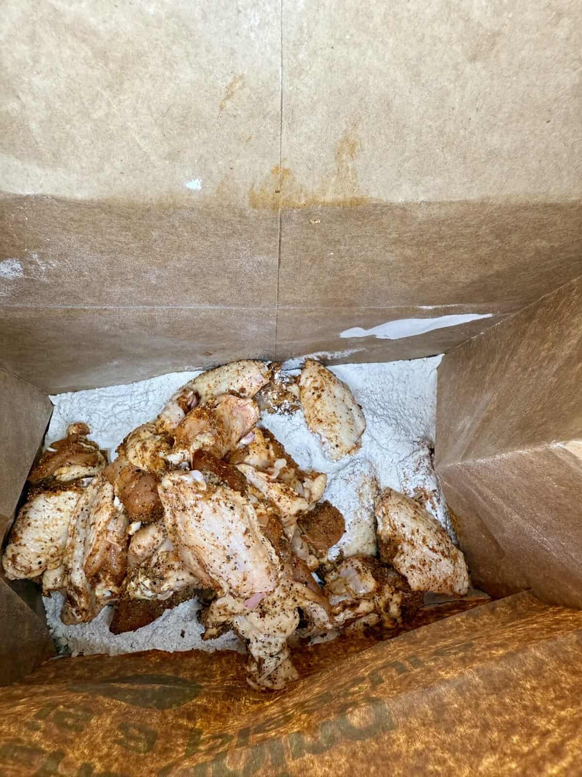 - Coat each wing in the seasoned flour, pressing lightly so it sticks. Shake off any excess and set aside.