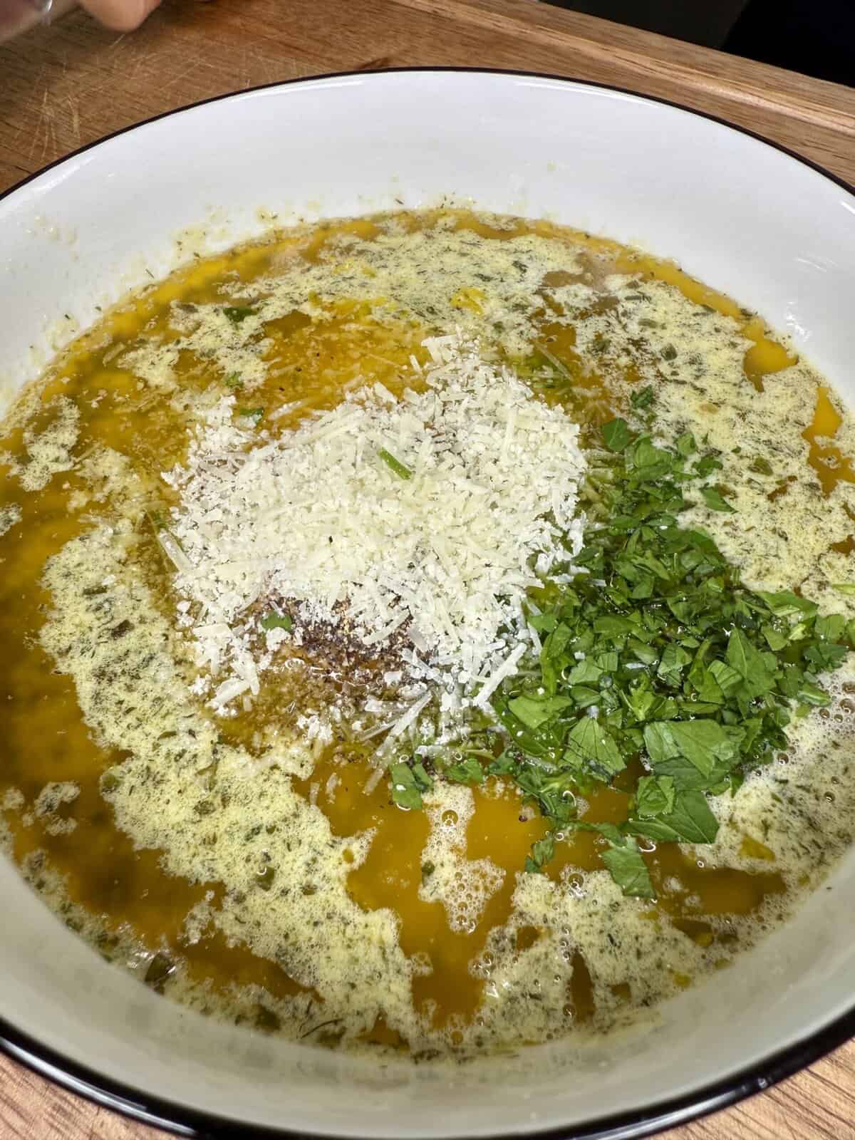 - In a small saucepan over low heat, melt the 2 sticks of Kerrygold Garlic & Herb Butter. Then add: