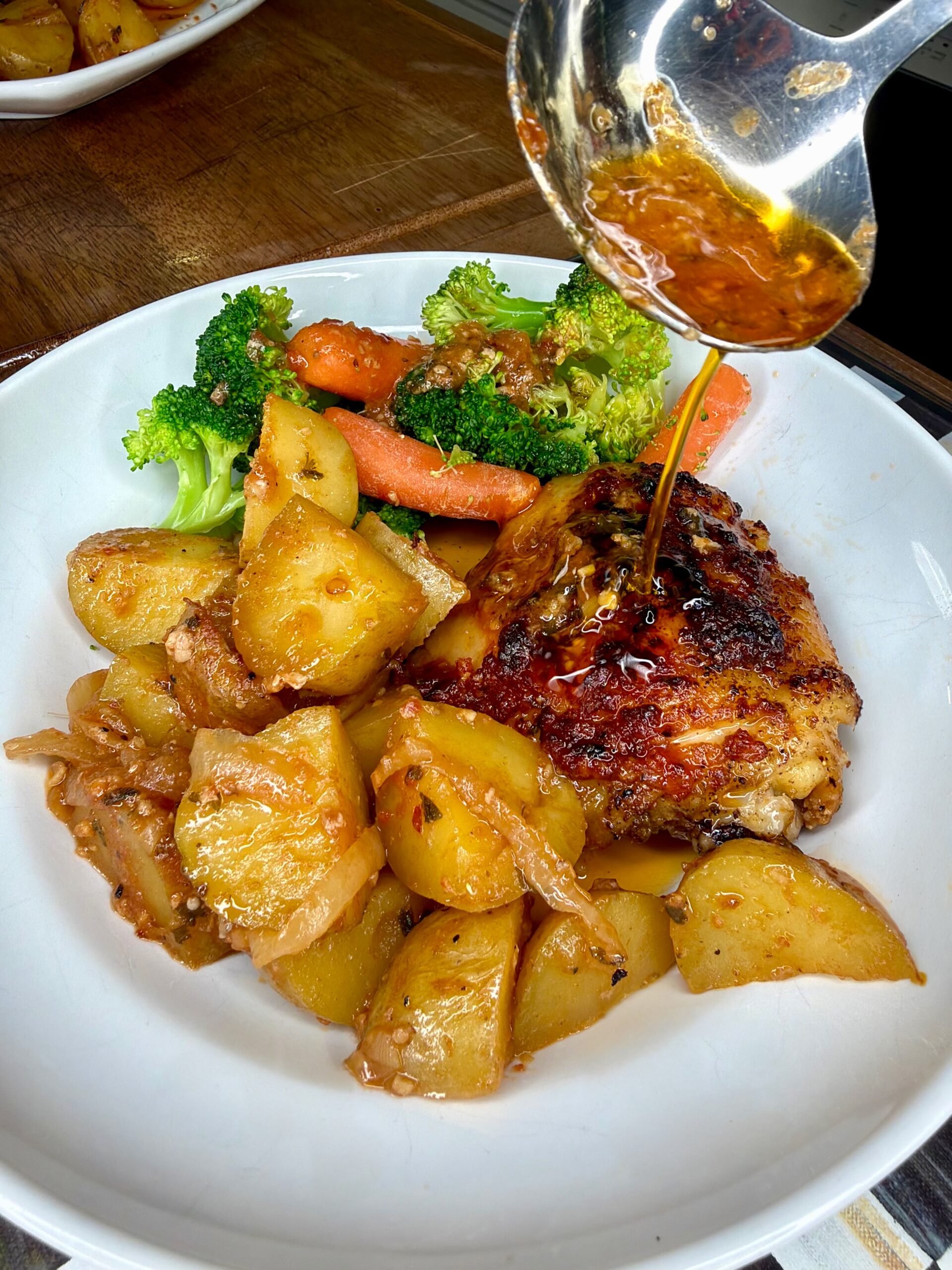 - Spoon those pan juices right over the chicken and potatoes before serving. Absolute perfection.