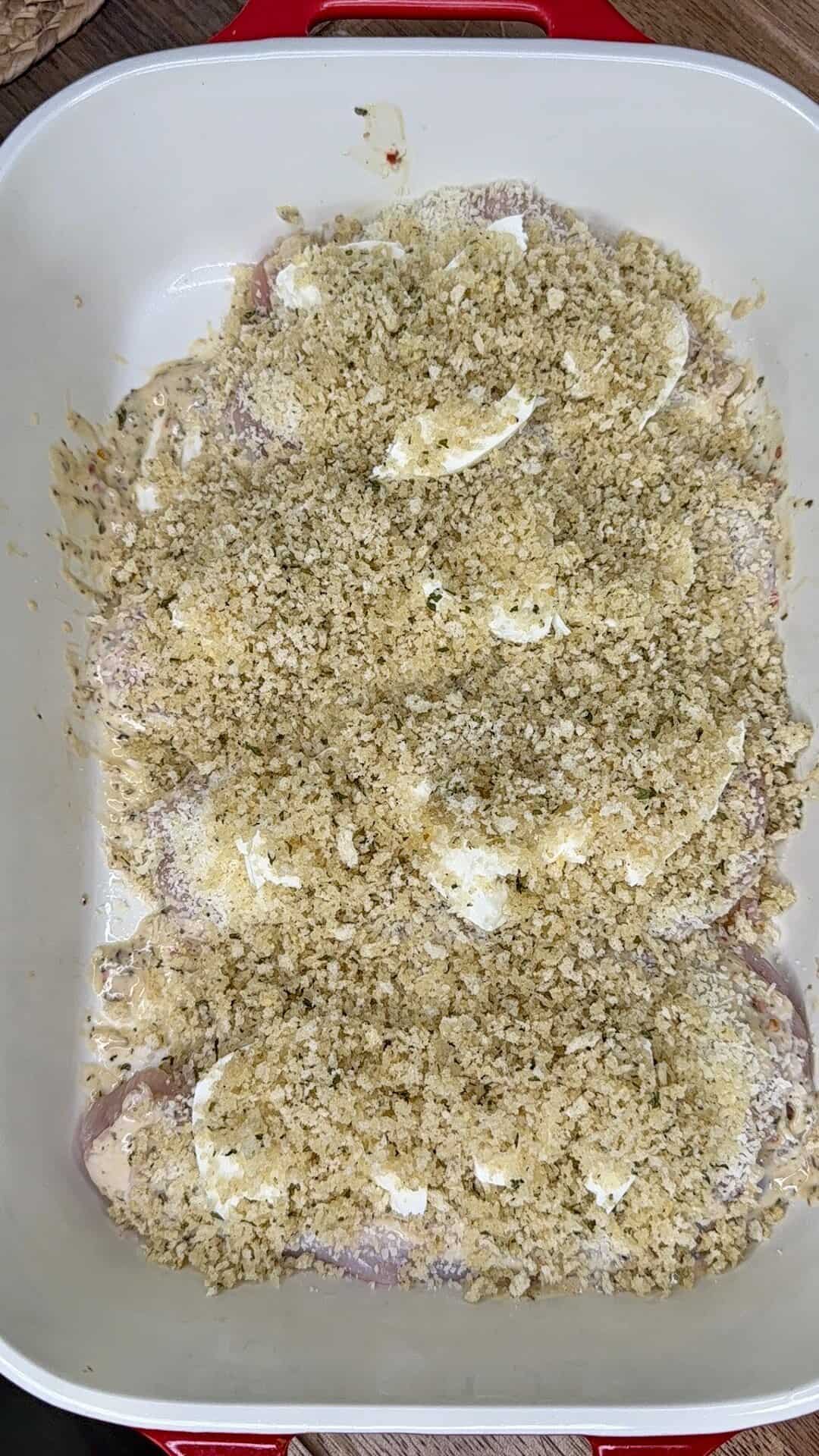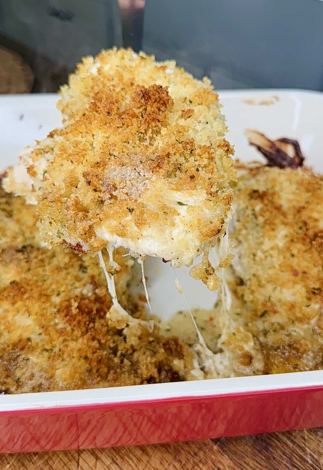 - Breadcrumb topping: In a small bowl, mix the seasoned Panko with melted butter. Sprinkle evenly over the chicken and cheese.