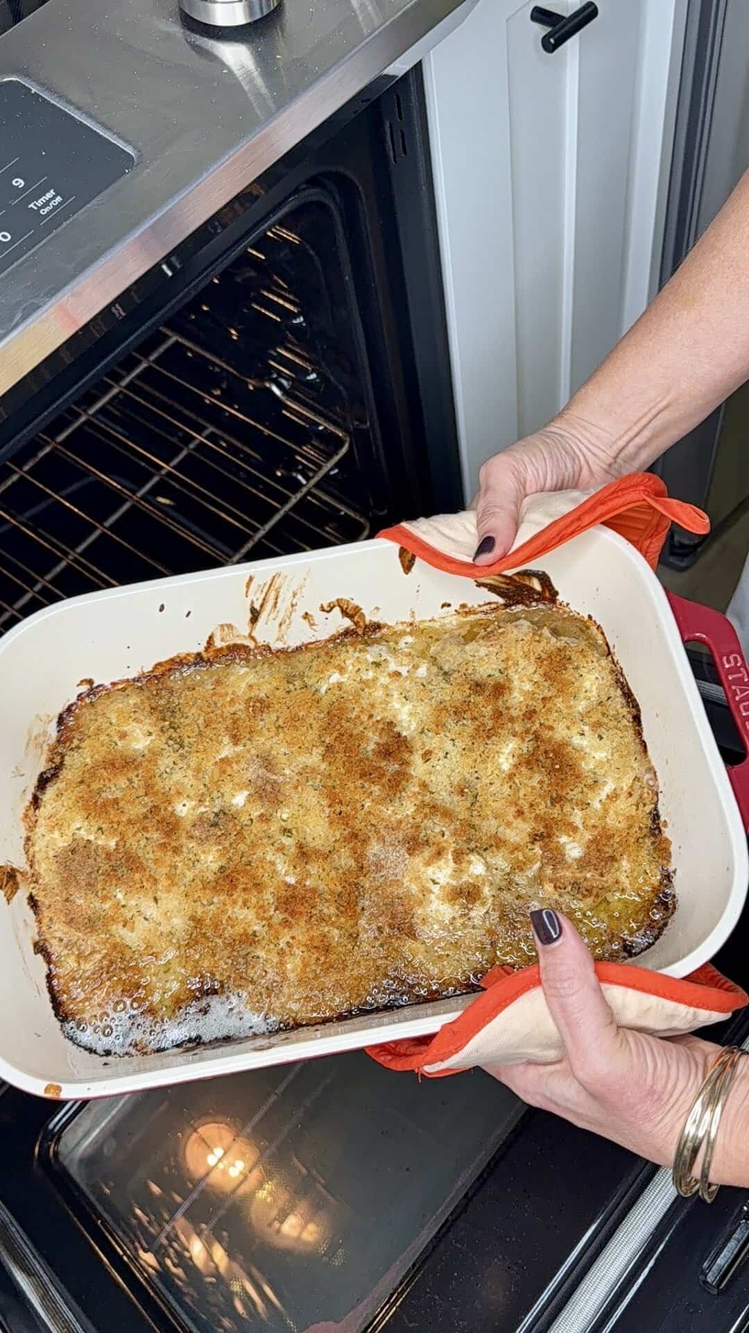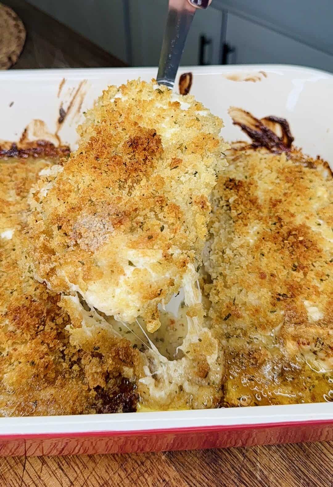 - Crunchy, cheesy topping – Panko + Parmesan + mozzarella = that signature crust.