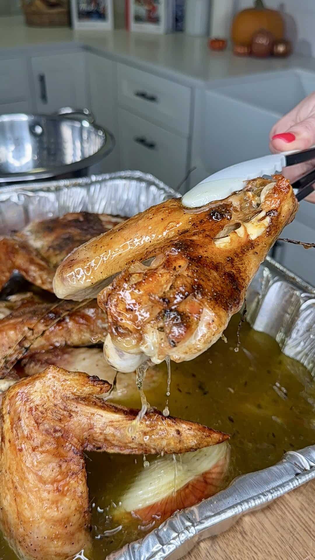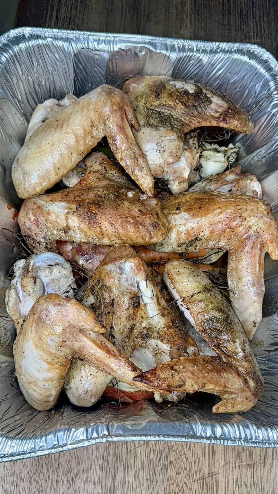 - Remove turkey wings (serve them for dinner — they’re delicious!).