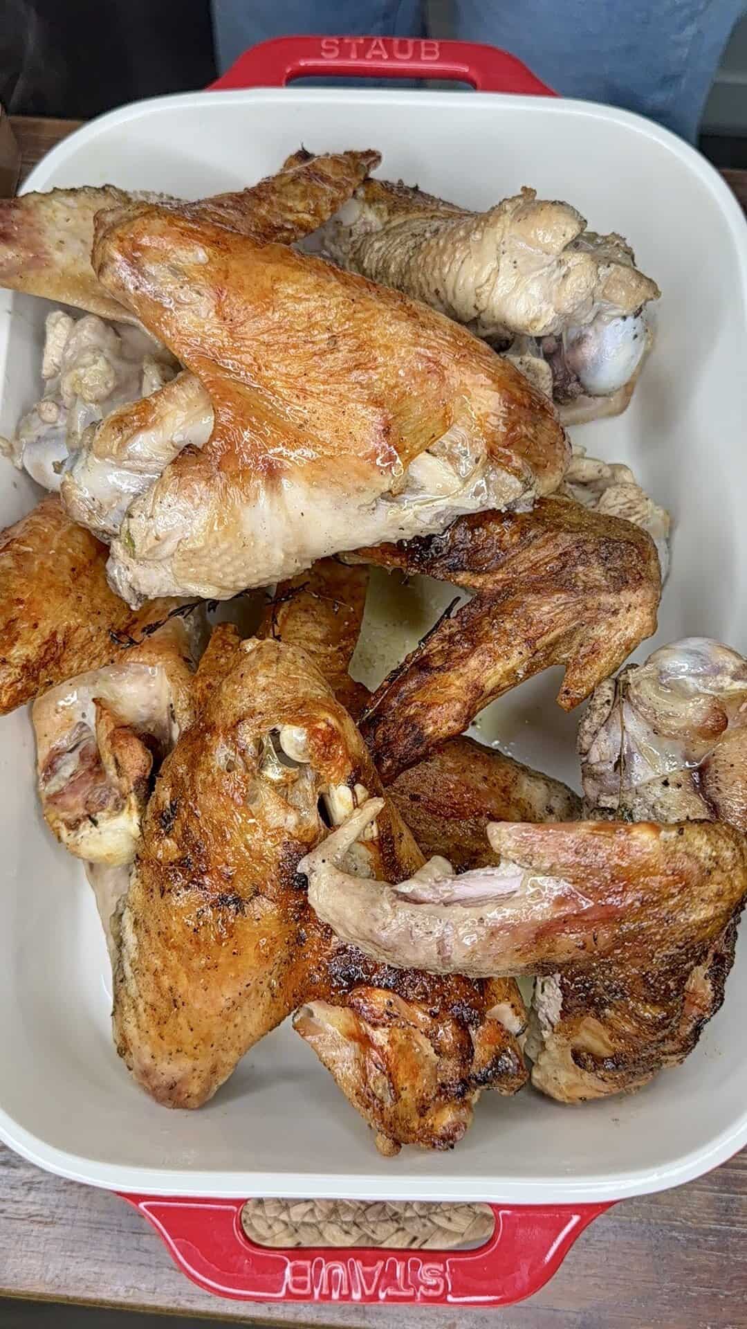 That amount will replace 2 full turkey wings or 1 wing + 1 drumstick in the original recipe.