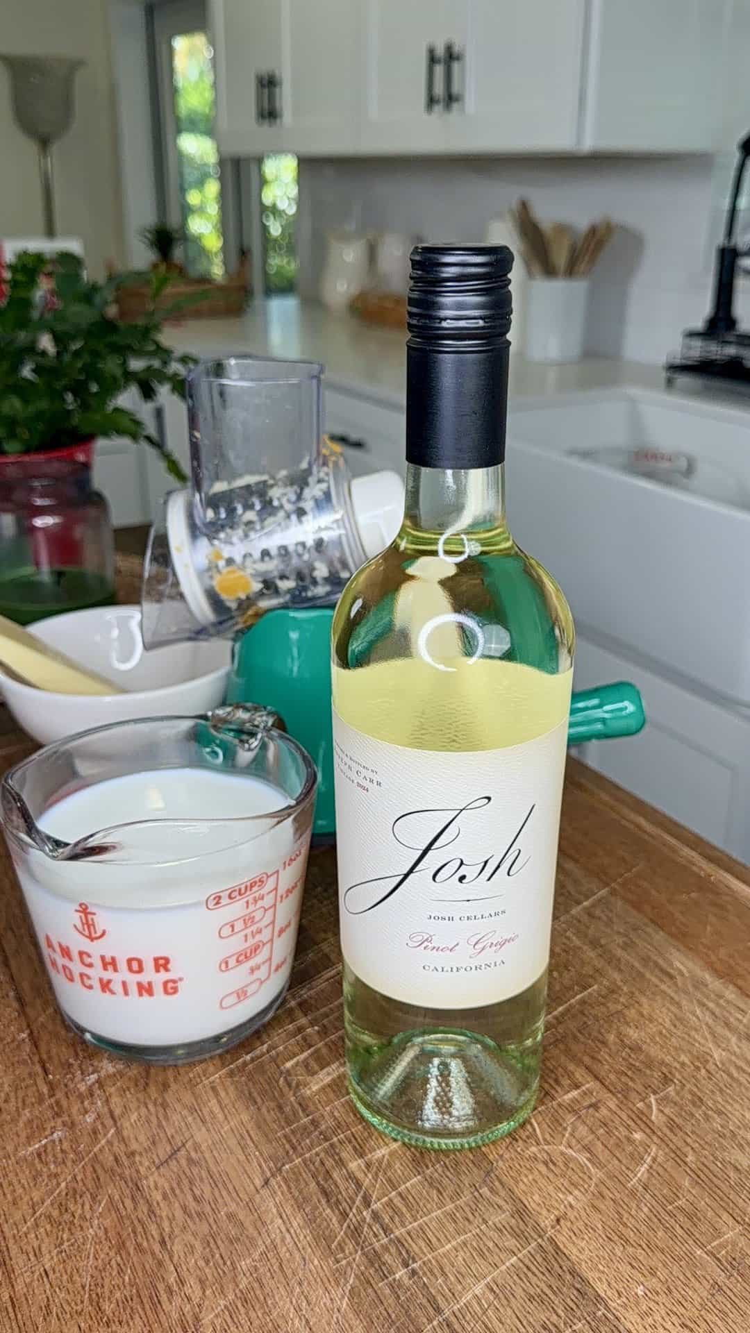 - Pour in the white wine first and whisk. It will look a little goopy — that’s totally fine.