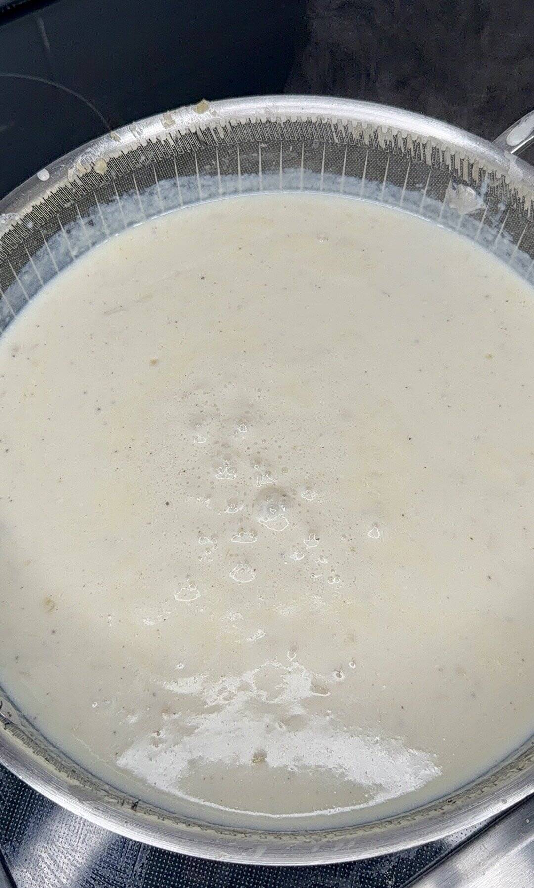 - Once all the milk is added, increase the heat slightly and bring the sauce to a gentle low boil.