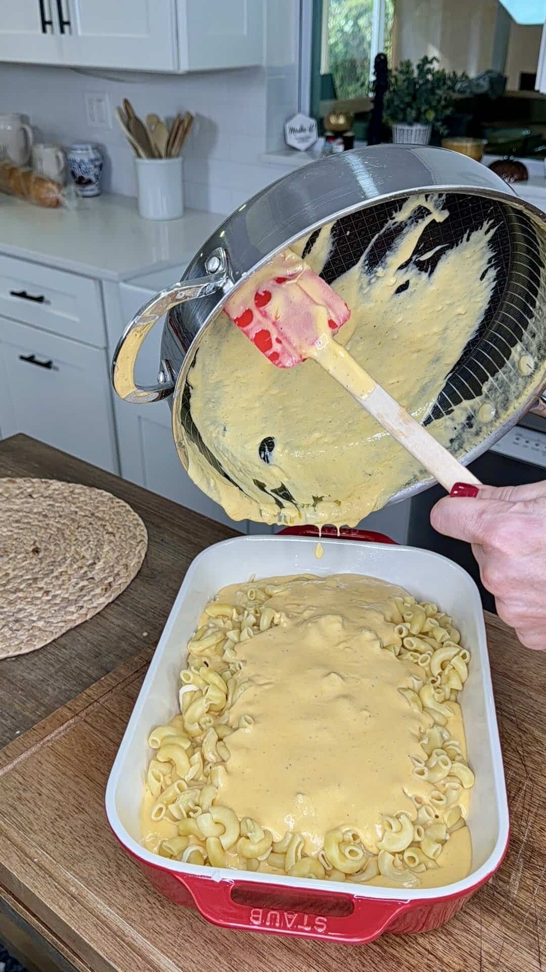- Add the elbow noodles and cook 1 minute under al dente (they will finish in the oven).