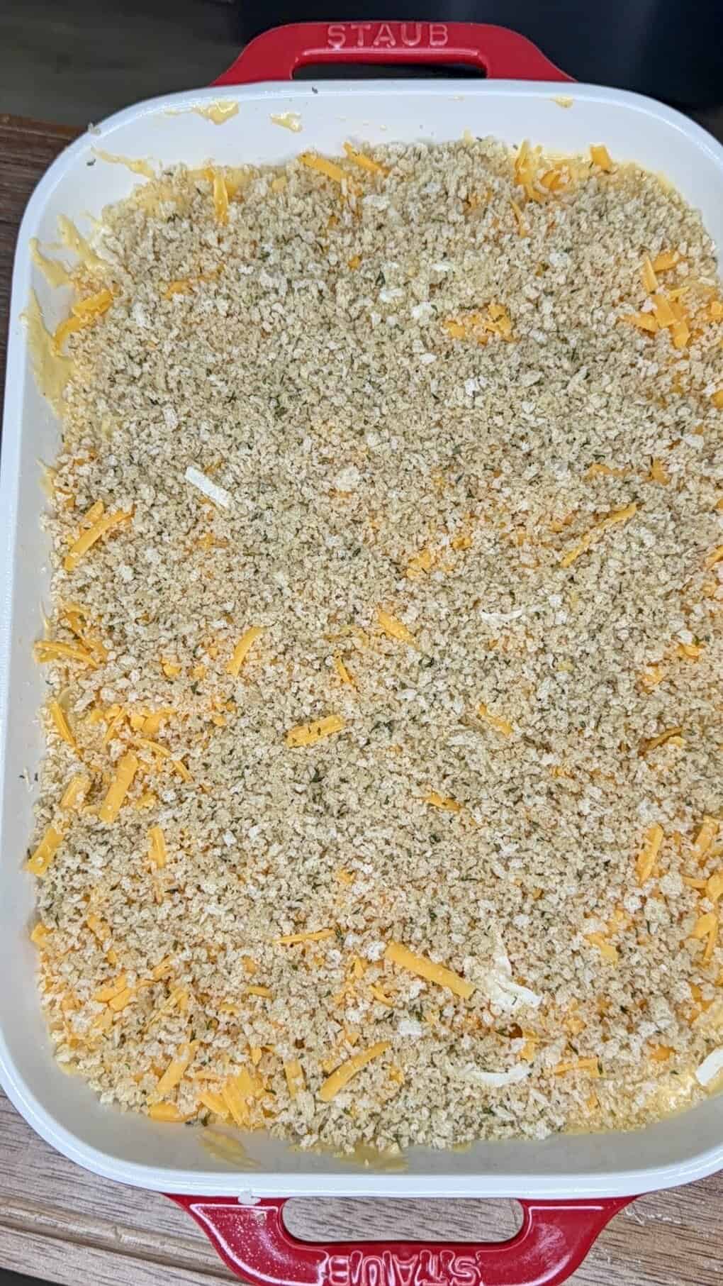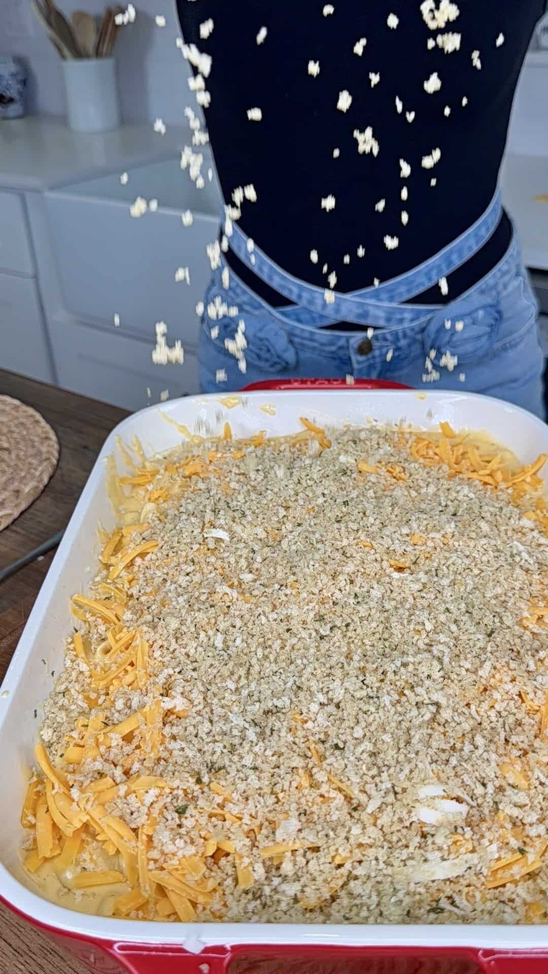 - Sprinkle evenly over the top for that perfect golden crunch.