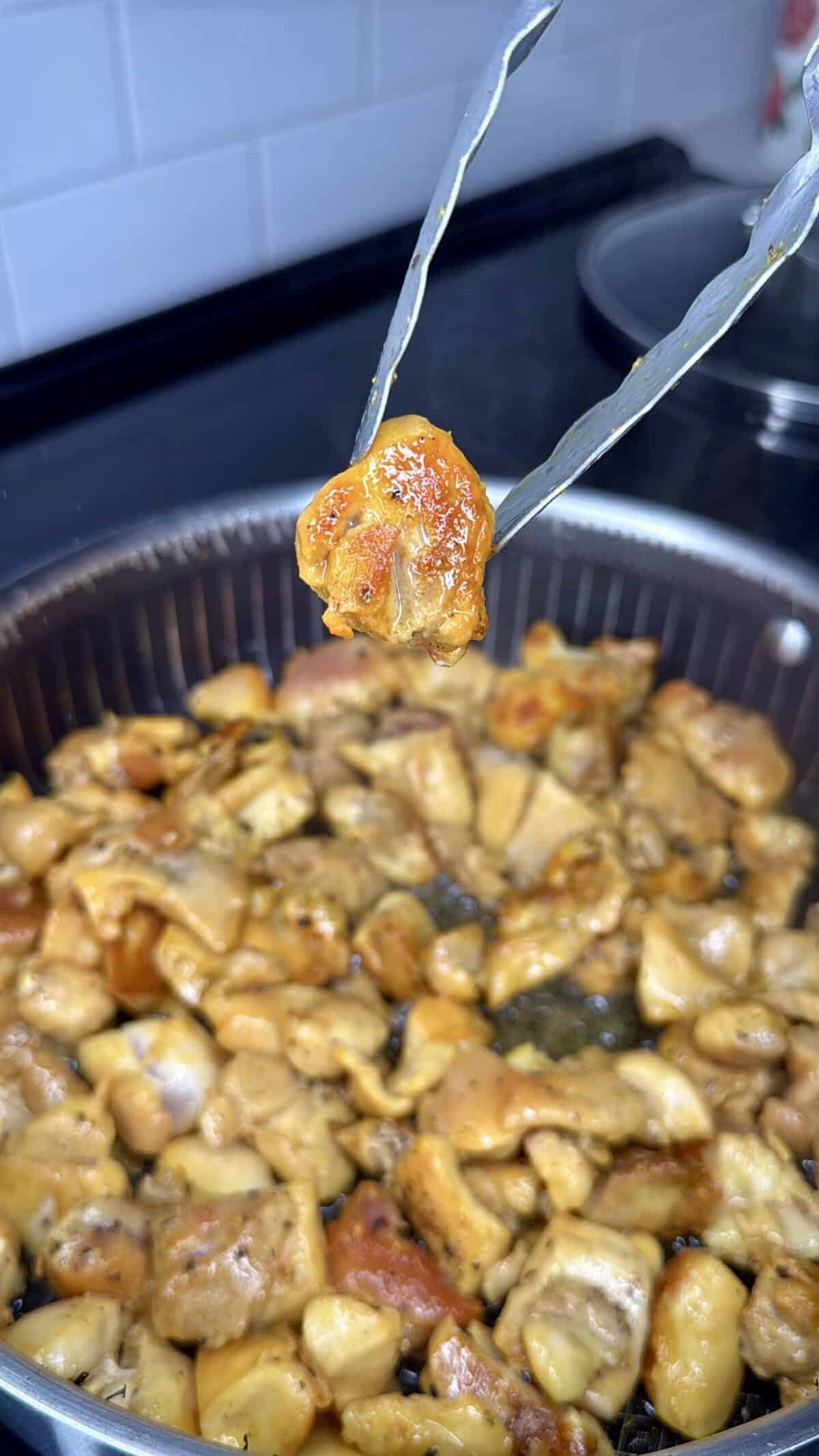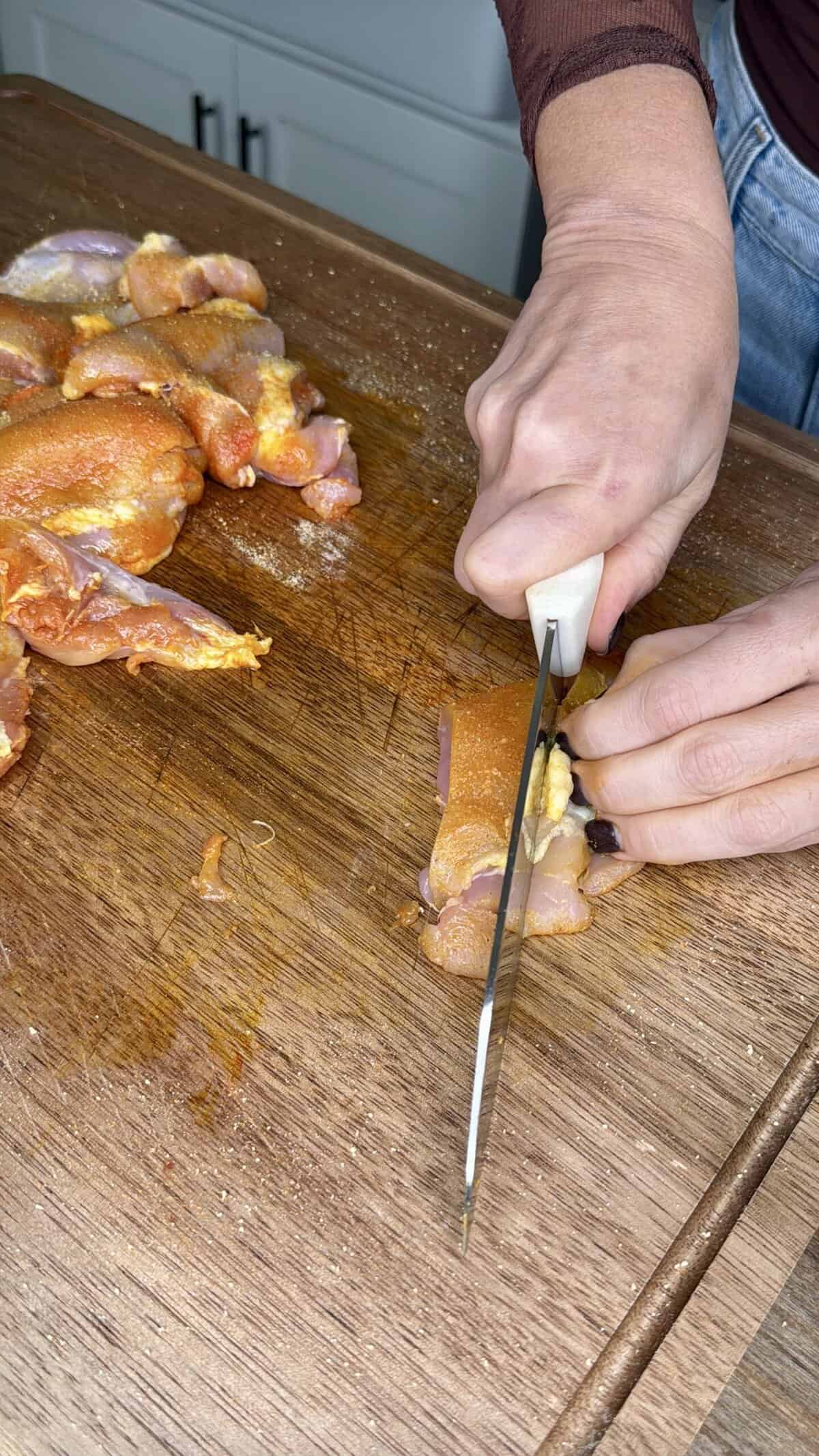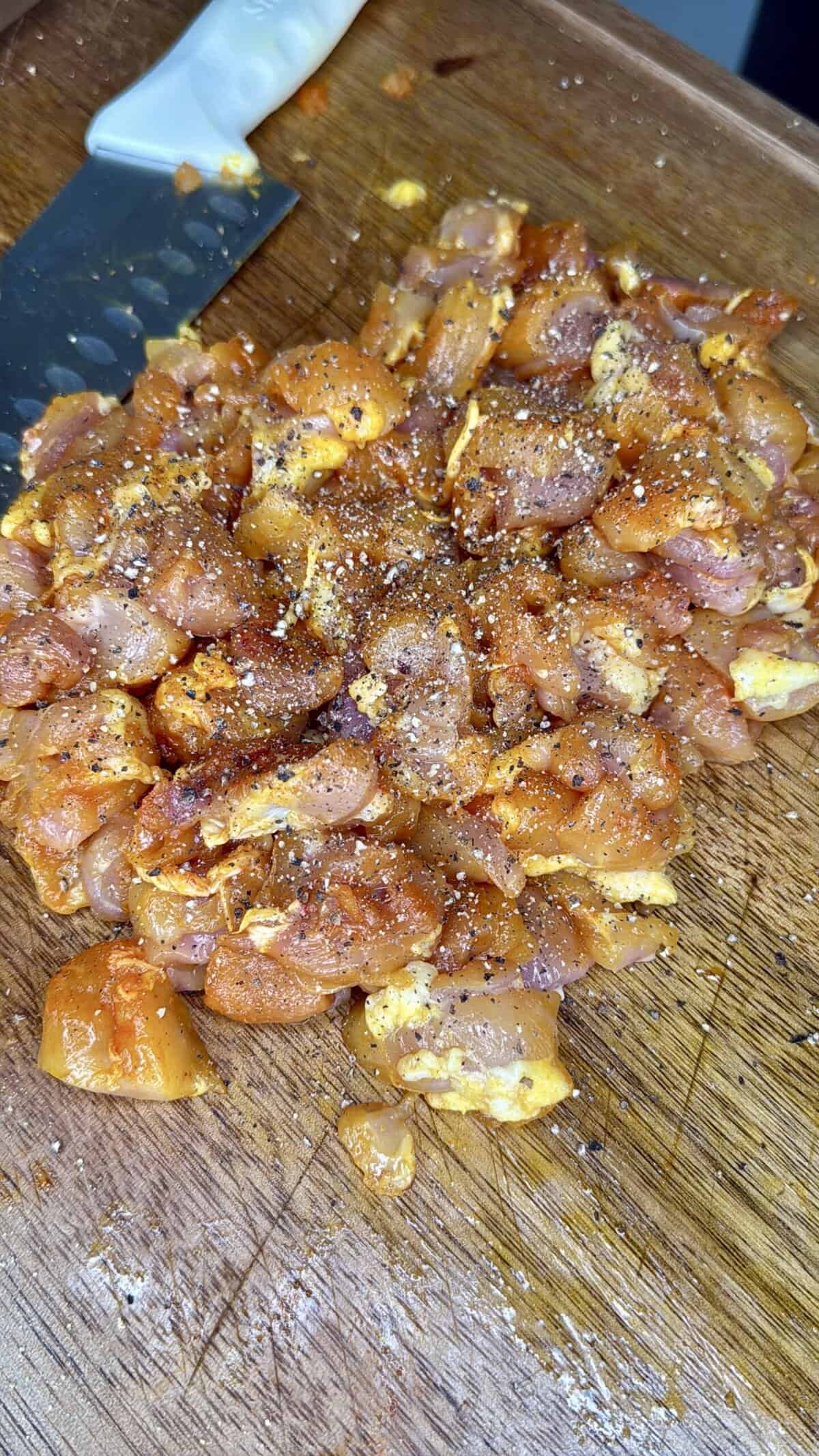 - 2 –2.5 lbs boneless skinless chicken thighs cut into chunks