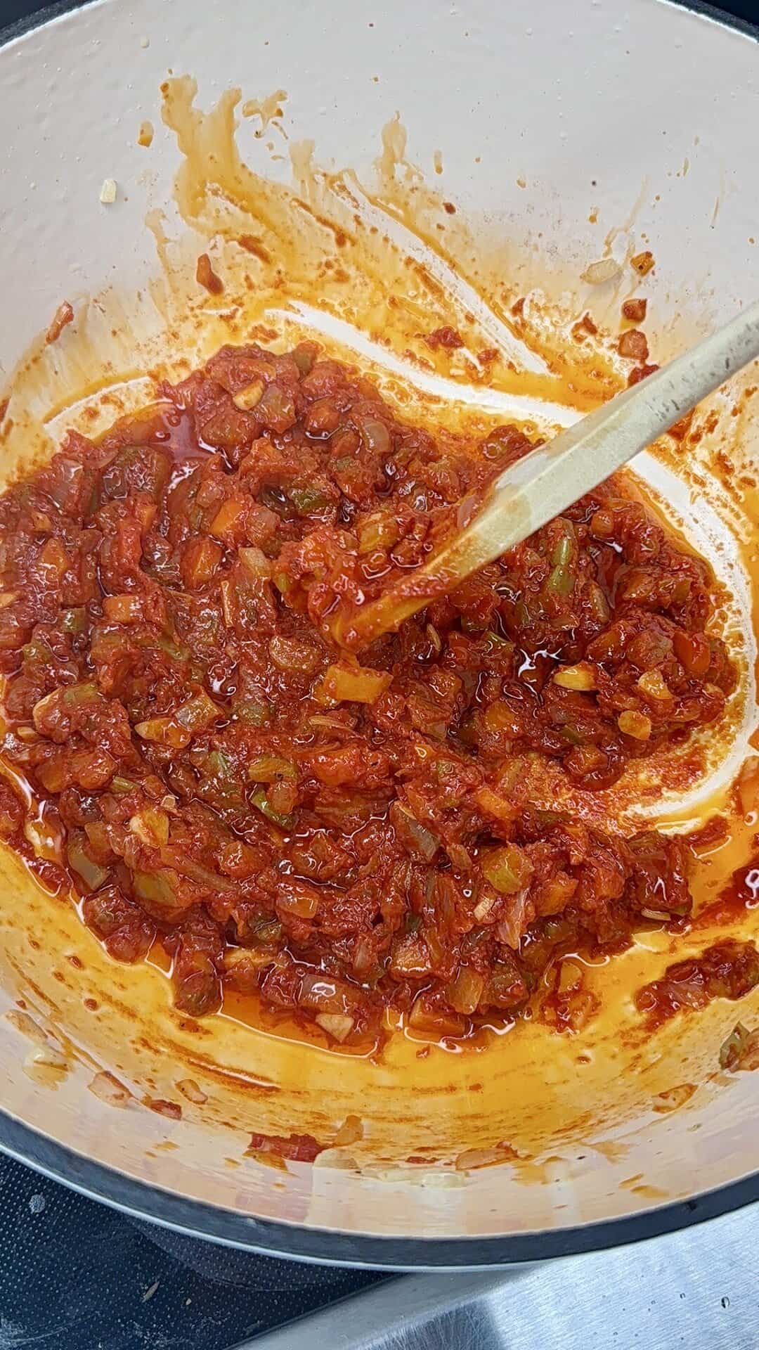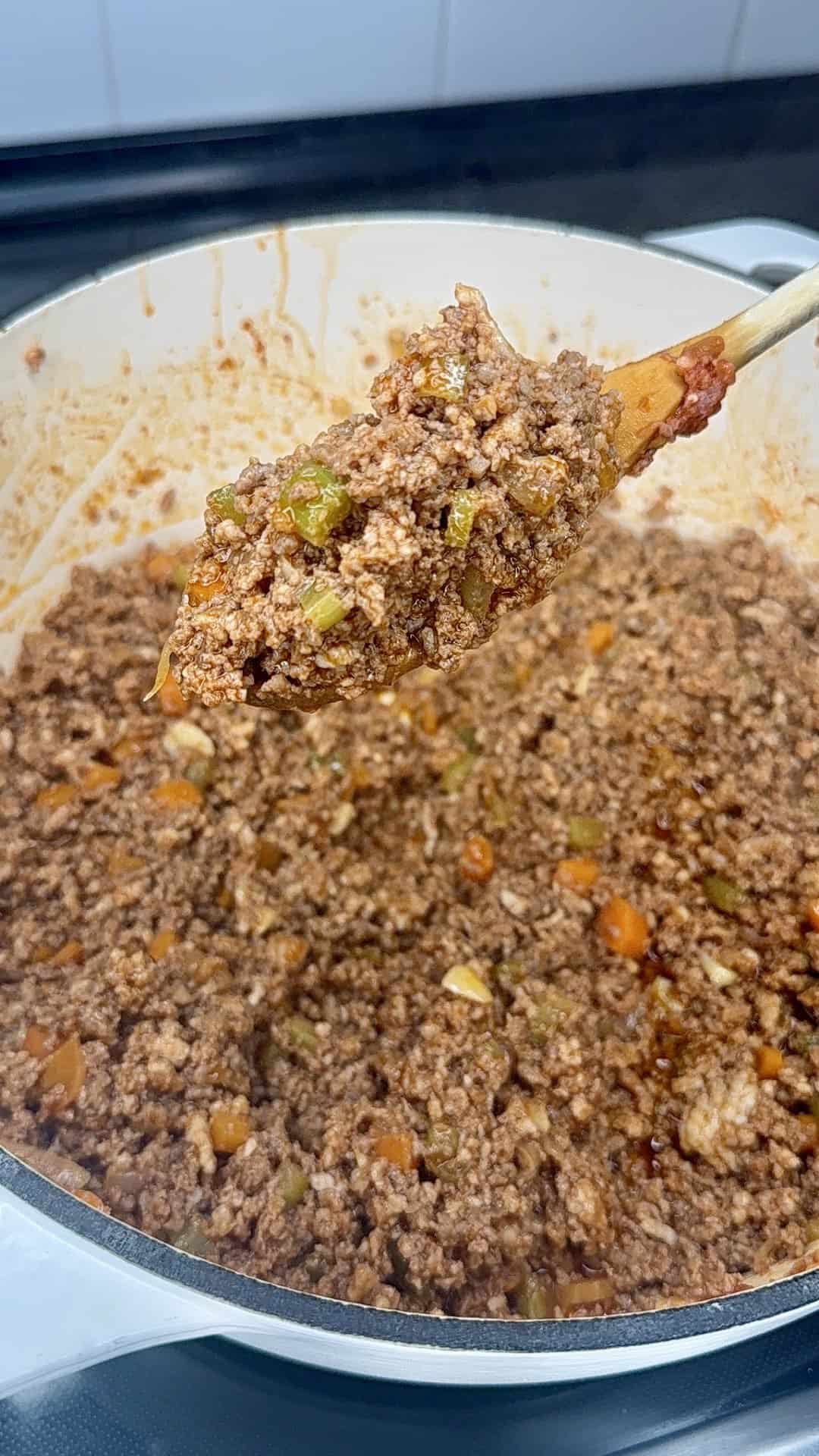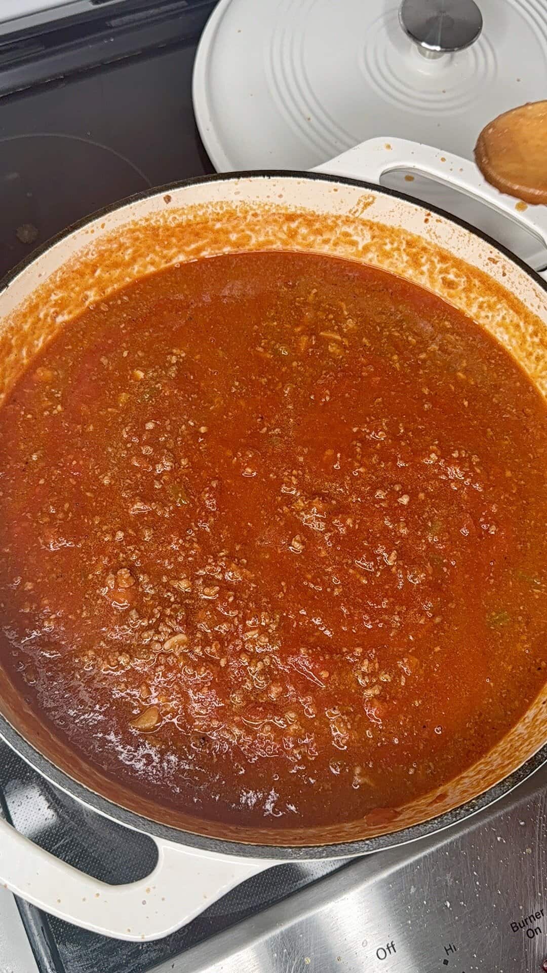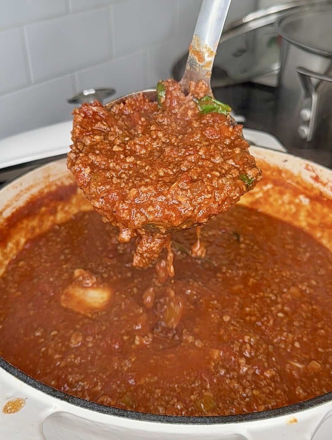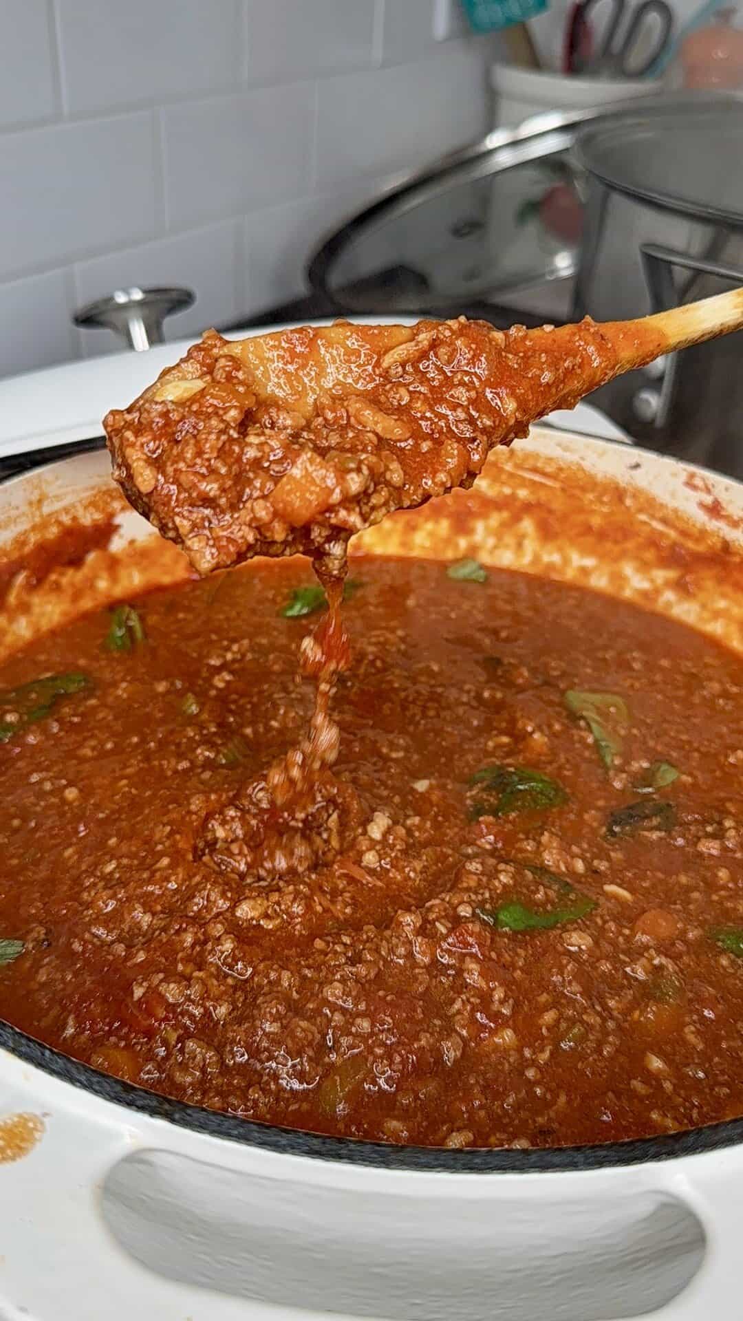 - Let it simmer for at least 1 hour, or longer if you have time (a few hours makes it magical). Add a splash of water if it starts to get too thick — it should stay saucy, not pasty. Stir occasionally to make sure nothing sticks to the bottom.