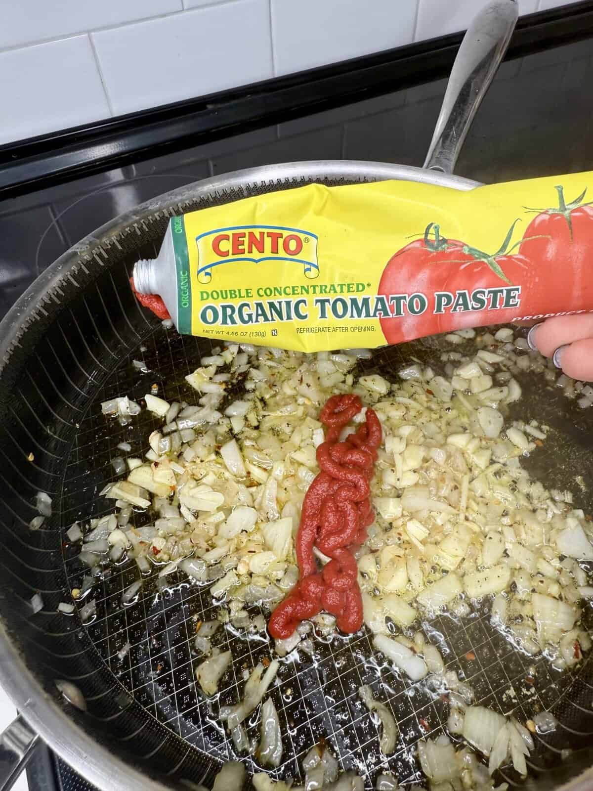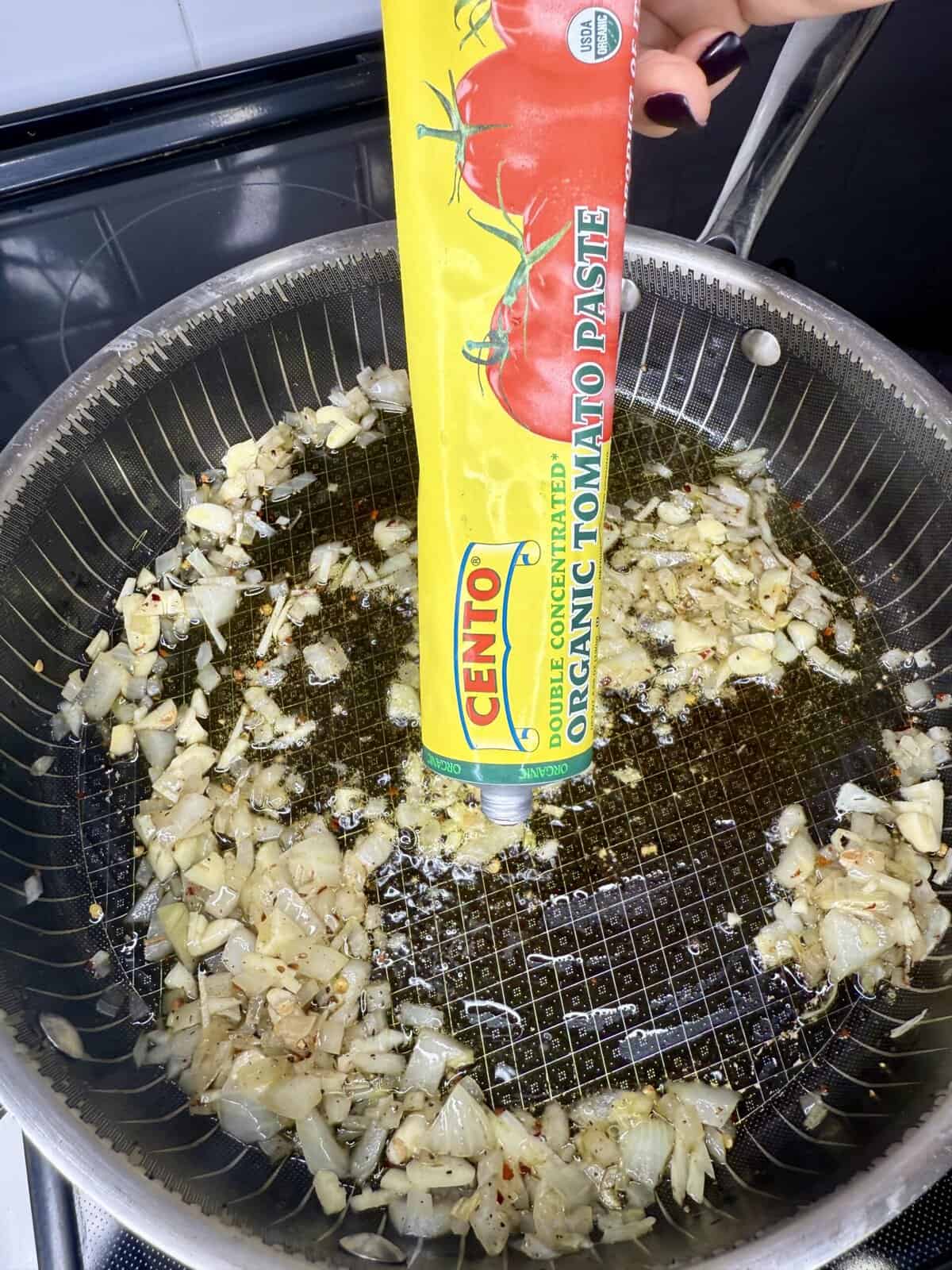 - Stir in the tomato paste and cook for 2 minutes. Pour in the Cabernet to deglaze, scraping up any browned bits from the bottom of the pan. Let it bubble for 2–3 minutes to cook off the alcohol.