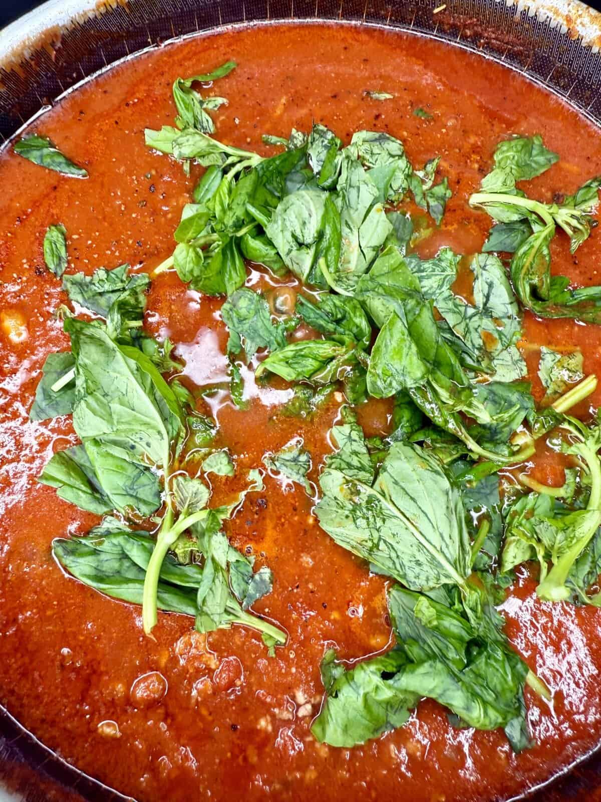 - Simple pantry ingredients + fresh basil at the end for brightness