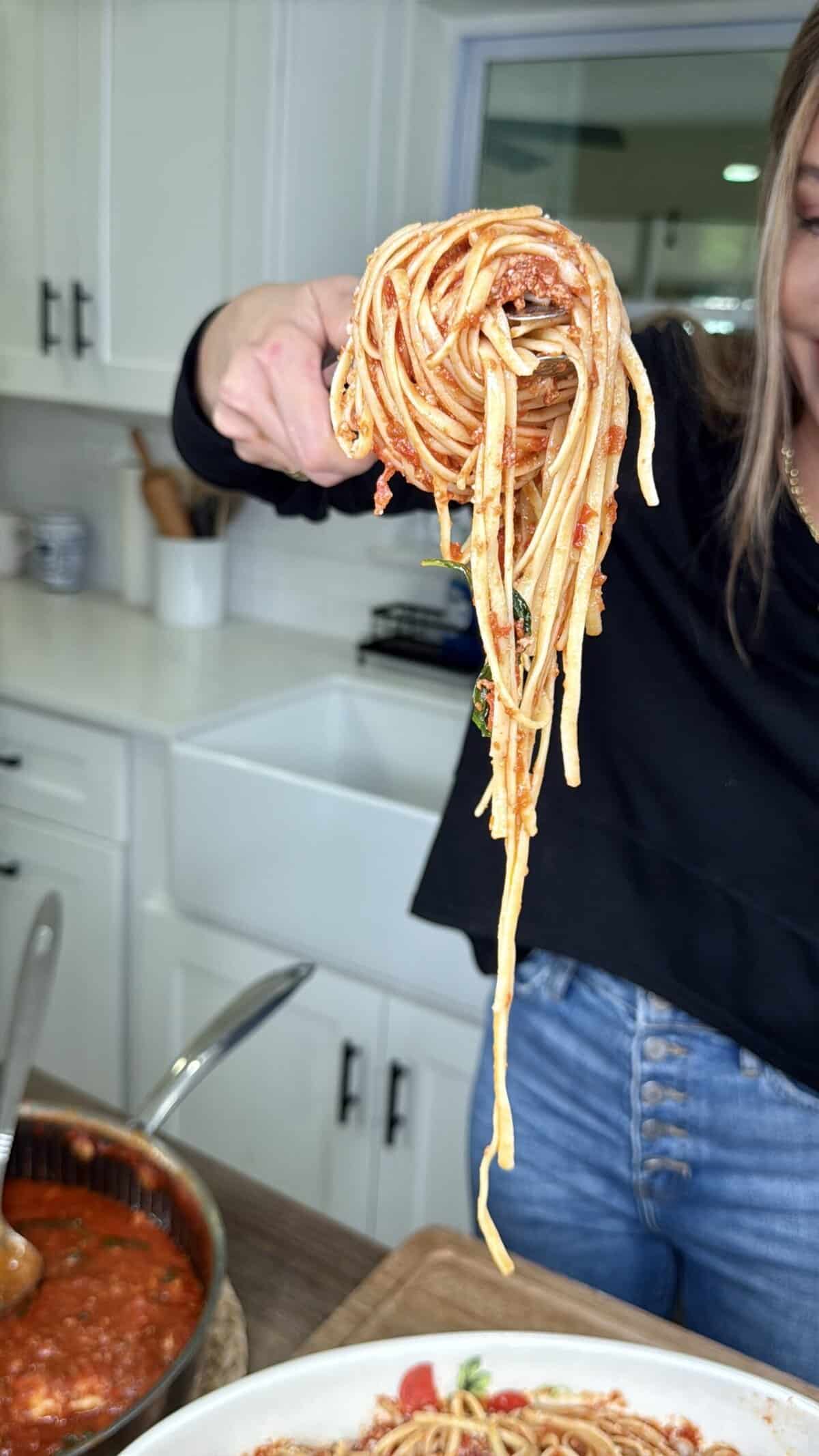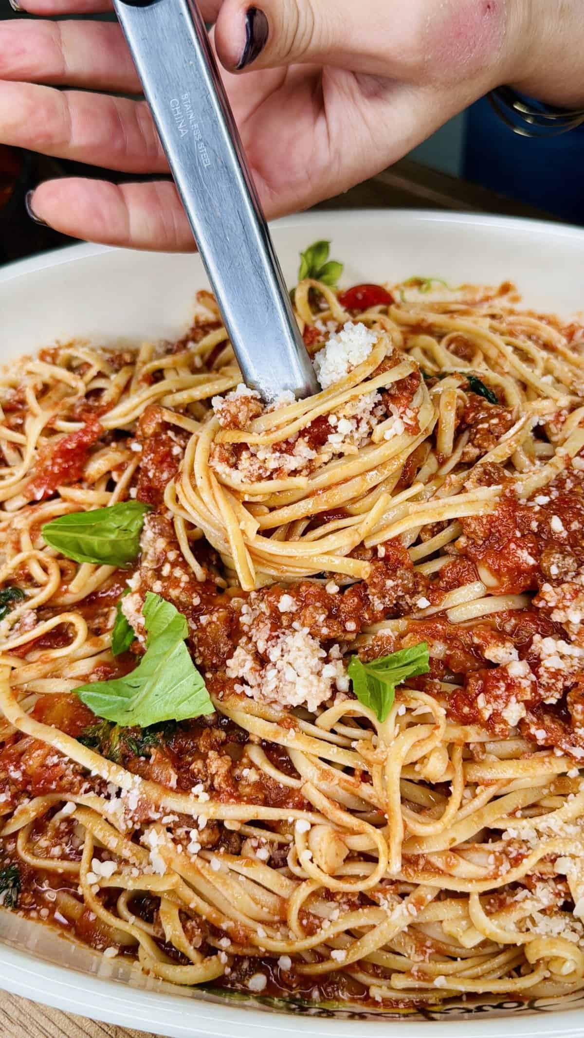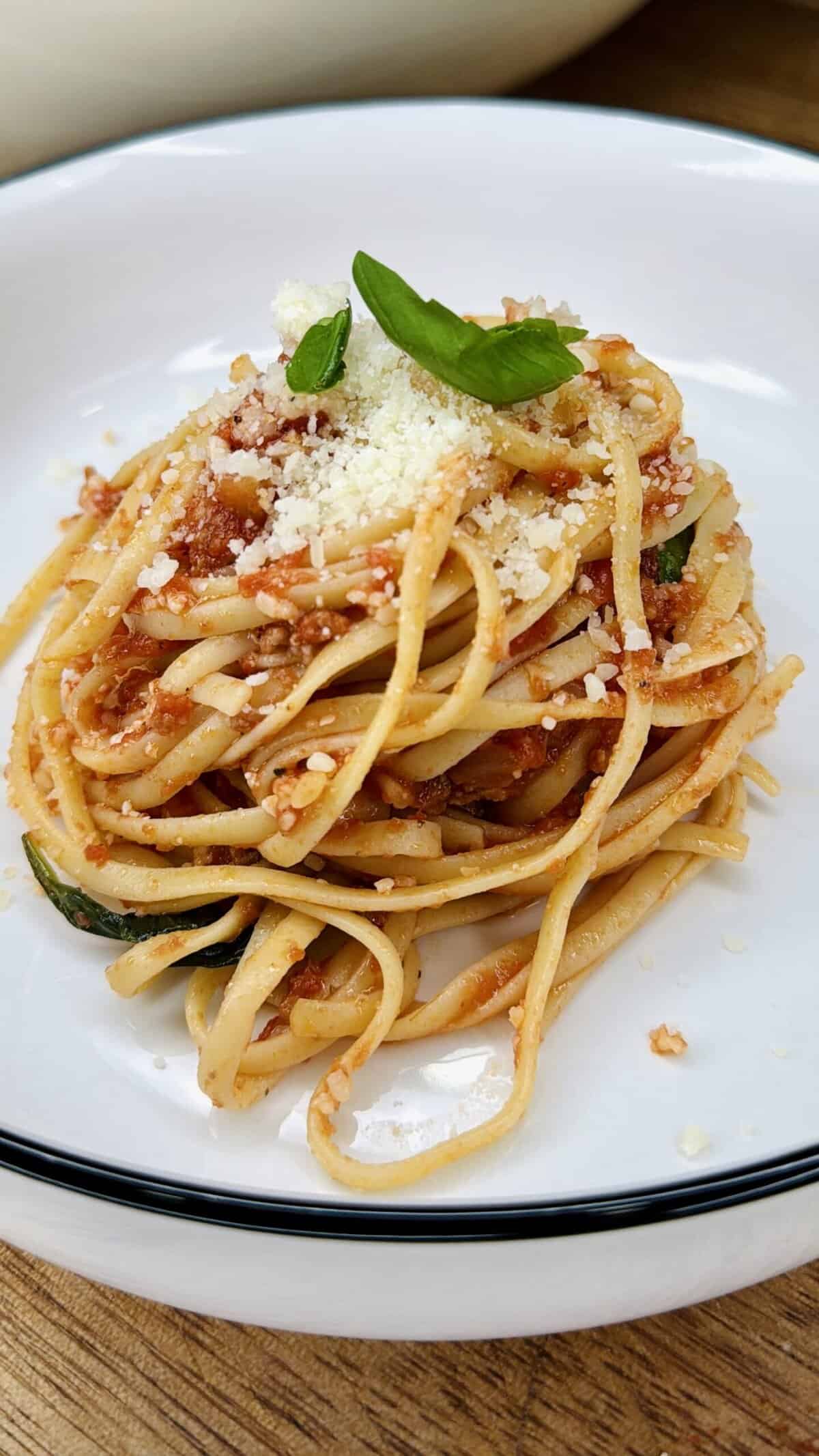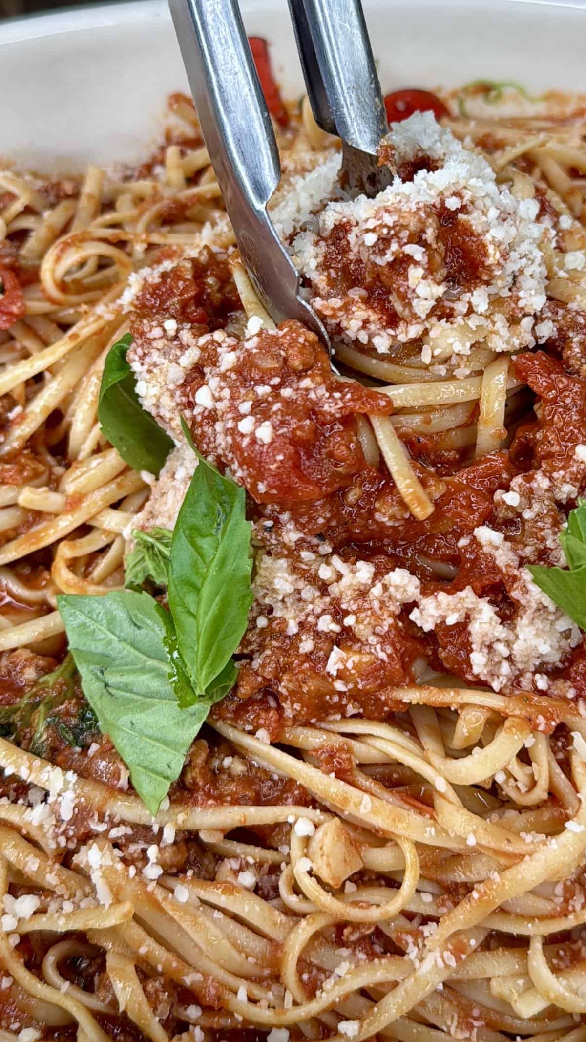 When you’re short on time but craving a plate of pasta that feels just as comforting as a slow-simmered Sunday sauce, this Saturday Spaghetti is the answer. But if you’re interested in my Sunday Sauce, Click here! It’s hearty, rich, and layered with flavor, but comes together in about 45 minutes instead of all day. With a quick blend of beef and pork, a splash of red wine, a touch of Pecorino Romano, and plenty of garlic and basil, you’ll be twirling your fork into something that tastes like it simmered for hours — without giving up your Saturday. If you want more recipes like this click the button below!