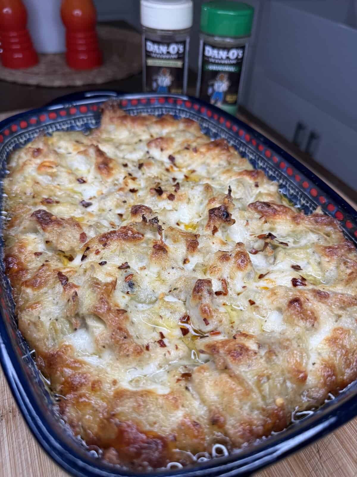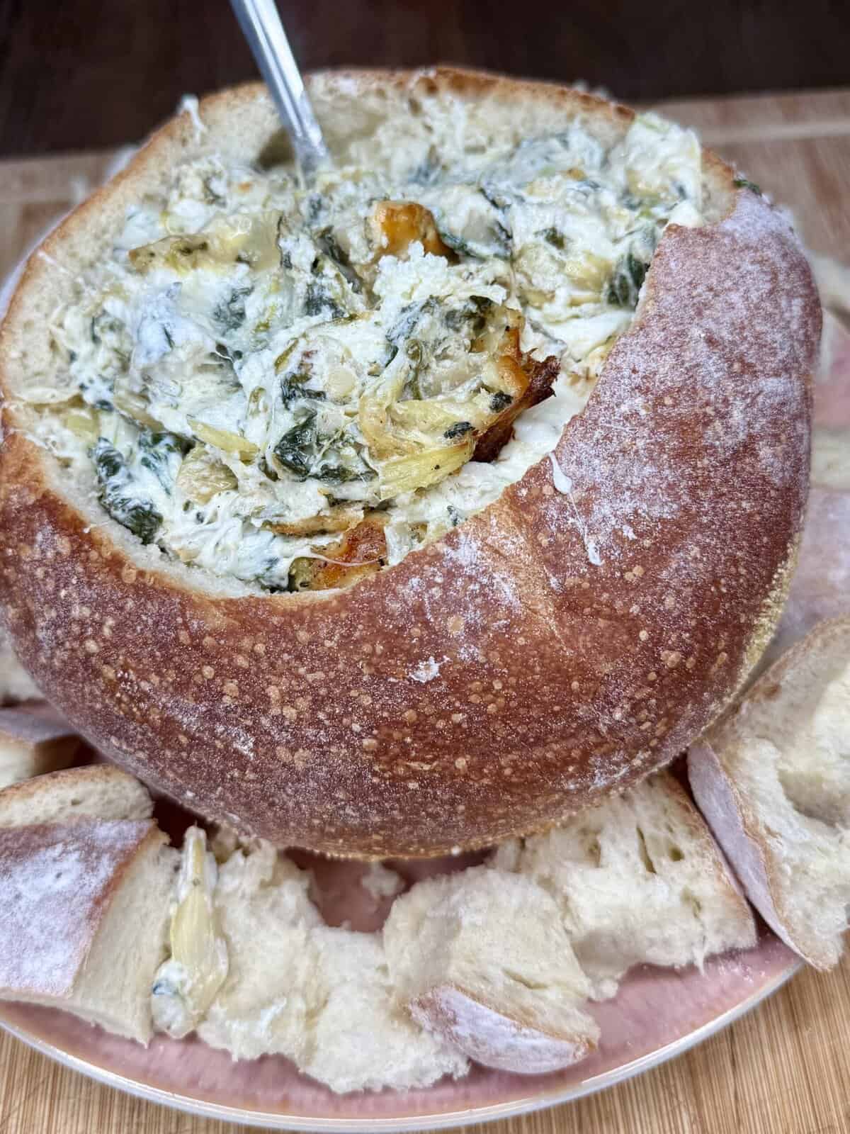 Same delicious flavor profile as the crockpot version, but baked until hot, golden, bubbly, and beautiful. It comes out looking like a restaurant appetizer. You can serve it directly in the hot baking dish (because it’s stunning) or spoon it into a bread bowl for extra holiday magic.