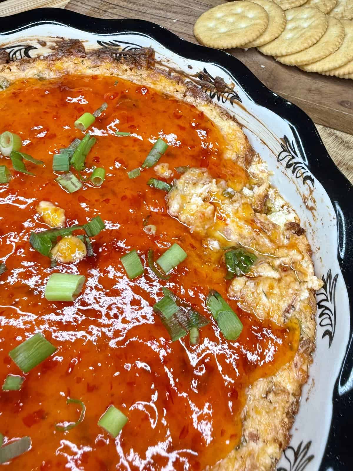 Last year I hosted both Christmas Eve and Christmas, and this dip stole the show on Christmas Eve. Everyone went absolutely crazy for it. It’s packed with flavor but super simple to make. I call it “Hot Christmas Dip” not because it’s spicy, but because it is HOT — as in hot and tempting — and it looks like Christmas with the red pepper jelly and green onions. Festive, gorgeous, and so good.