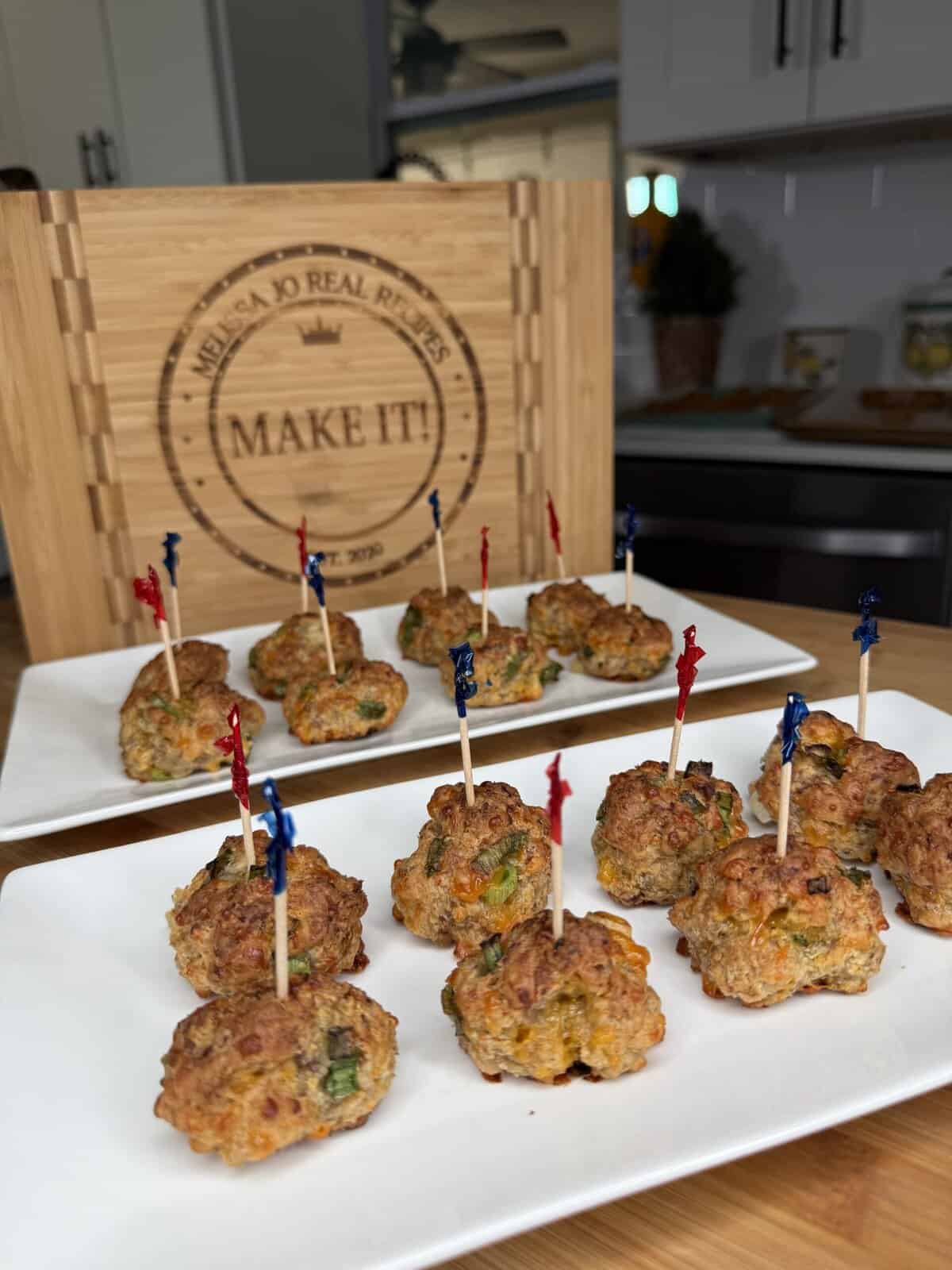 Is it really a party without the party balls? I think not. Only four ingredients and they’re the most delicious, pop-and-go bites EVER. They’re a classic in my house, and I add my little extra twist to make them holiday-worthy. Serve them with cranberry hot honey or your favorite dip and watch them vanish.