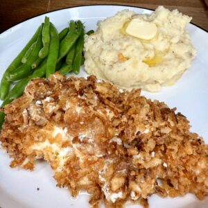 In a small bowl, crush the French-fried onions slightly, then toss them with 4 tbsp melted butter and 2 tsp Worcestershire sauce until coated.