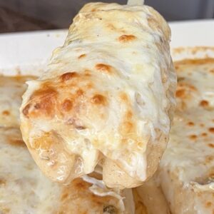 If you love cheesy, comforting, and totally irresistible dinners, these Creamy White Chicken Enchiladas are going to be your new obsession. Tender rotisserie chicken is mixed with green chiles and cheese, rolled in soft tortillas, and smothered in a rich jalapeño-garlic cream sauce. Baked under Monterey Jack until melty and bubbly, this dish is the definition of cozy comfort food. This is my twist on a Tex-Mex classic — creamy, zesty, and loaded with flavor, but still super approachable for weeknights.If you love these, you’ll also want to check out my Viral Roast Beef Sliders, Crock-Pot Italian Beef Sandwiches, or my cozy Marry Me Chicken Soup.
